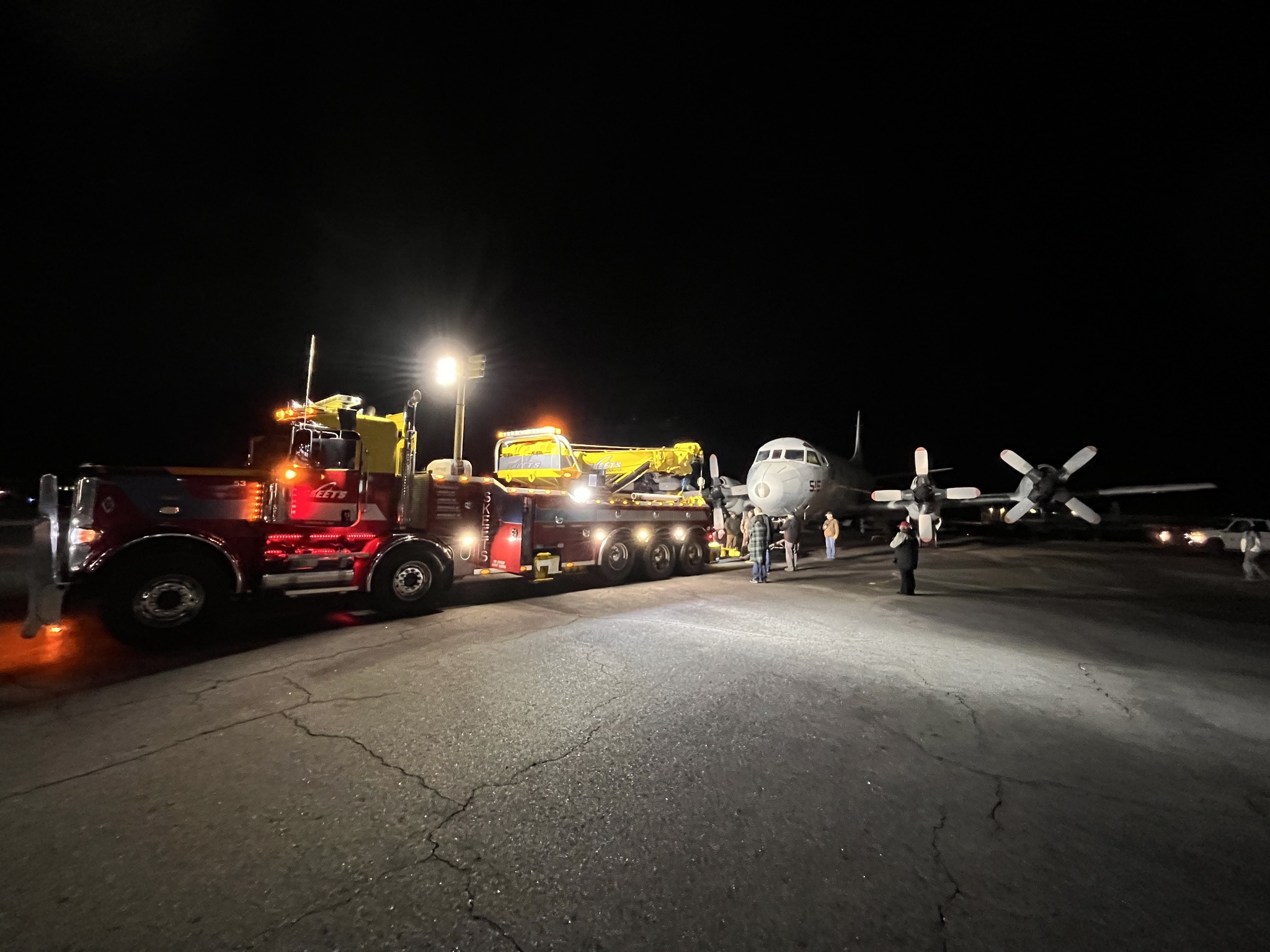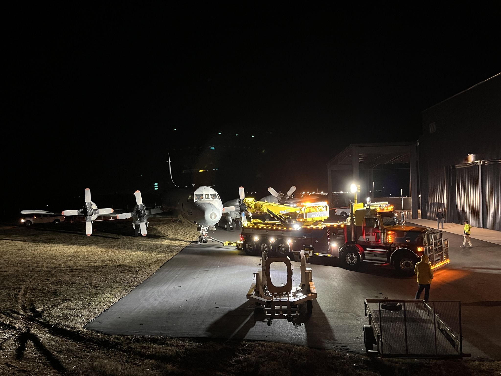 Progress accelerated in June 2025 with the arrival of the museum’s first two aircraft inside the partially completed structure. The FM-2 Wildcat and the TO-1 Shooting Star were successfully moved indoors, marking an important step toward transforming the construction site into a functioning museum space. In early January, museum volunteers achieved another major milestone by moving the P-3C Orion into the new hangar for a test fit. The operation went smoothly, thanks in part to Skeets Wrecker Service, which assisted with the tow. Once positioned, it became clear that the aircraft will be a striking centerpiece within the facility.