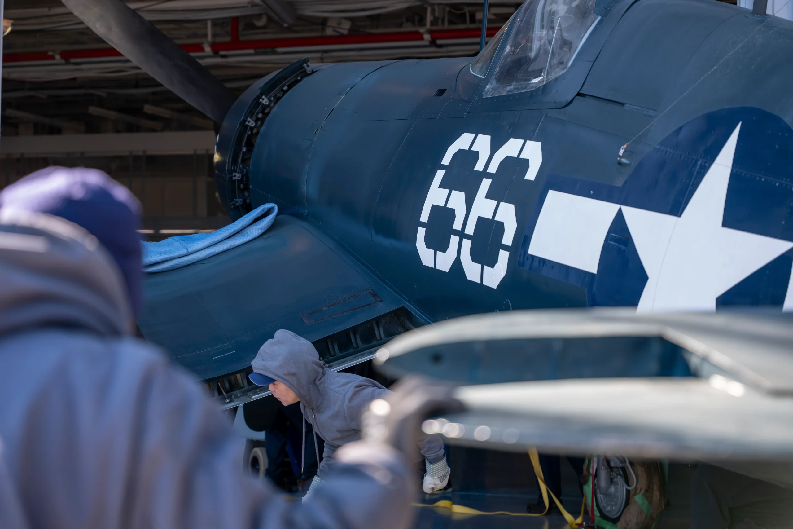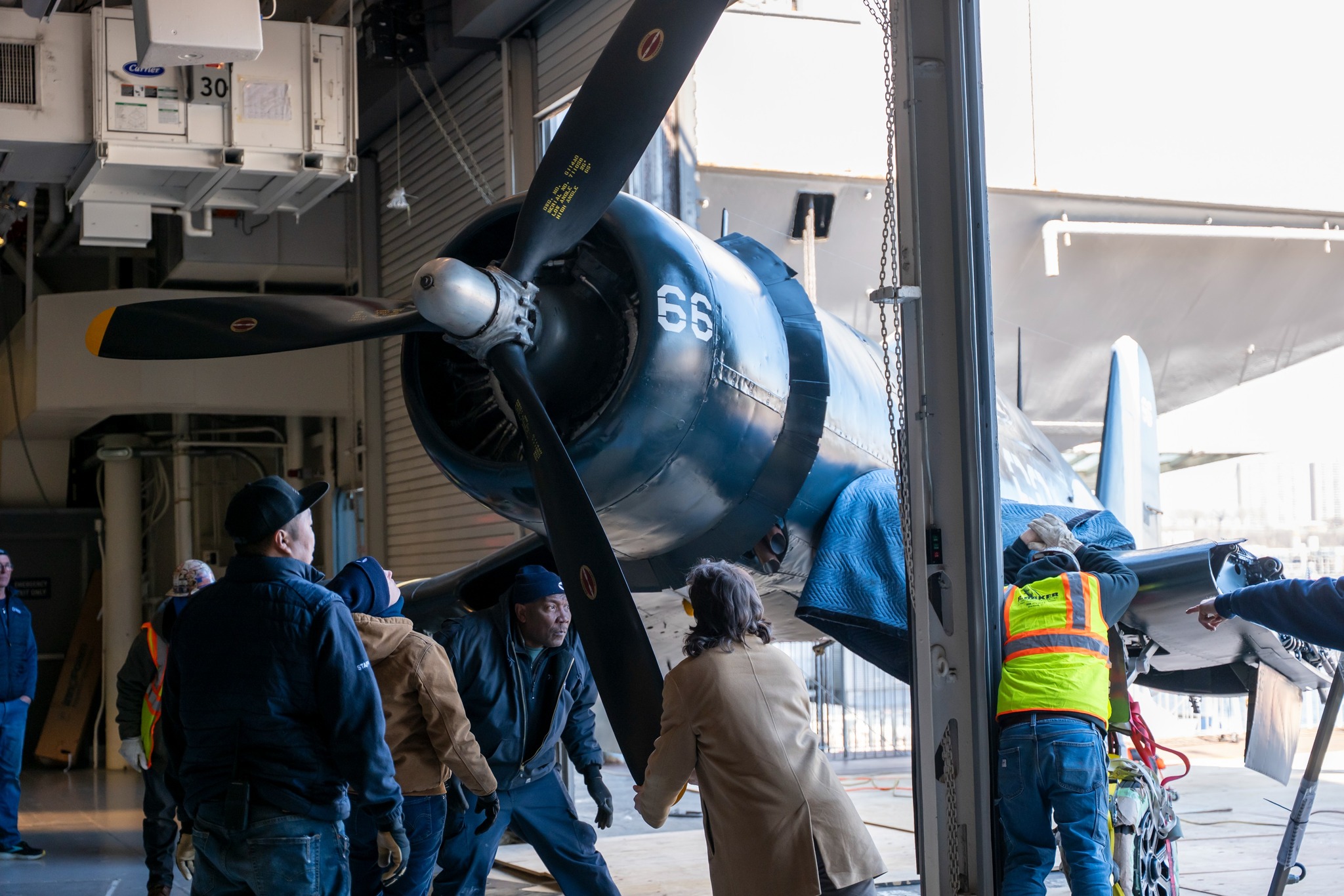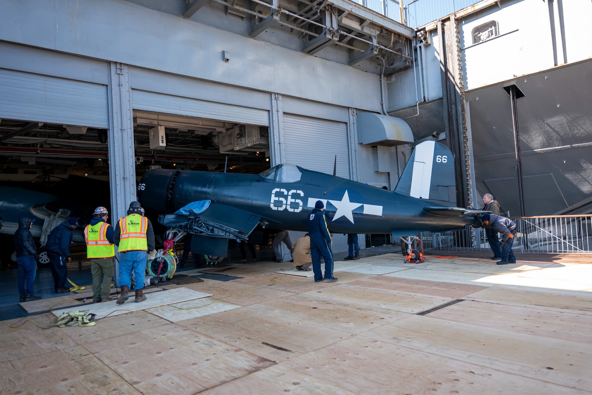 On March 21, the Intrepid Museum in New York City officially unveiled a new 10,500 square-foot exhibition in the hangar deck of the USS Intrepid (CV-11), featuring a Goodyear-built FG-1D Corsair (Bureau Number 92013) on loan from the National Naval Aviation Museum. We have covered this Corsair’s arrival in October 2024 HERE, following its loan to the National Museum of the US Navy at the Washington Navy Yard in Washington, D.C., and have covered the aircraft in other articles HERE and HERE.
