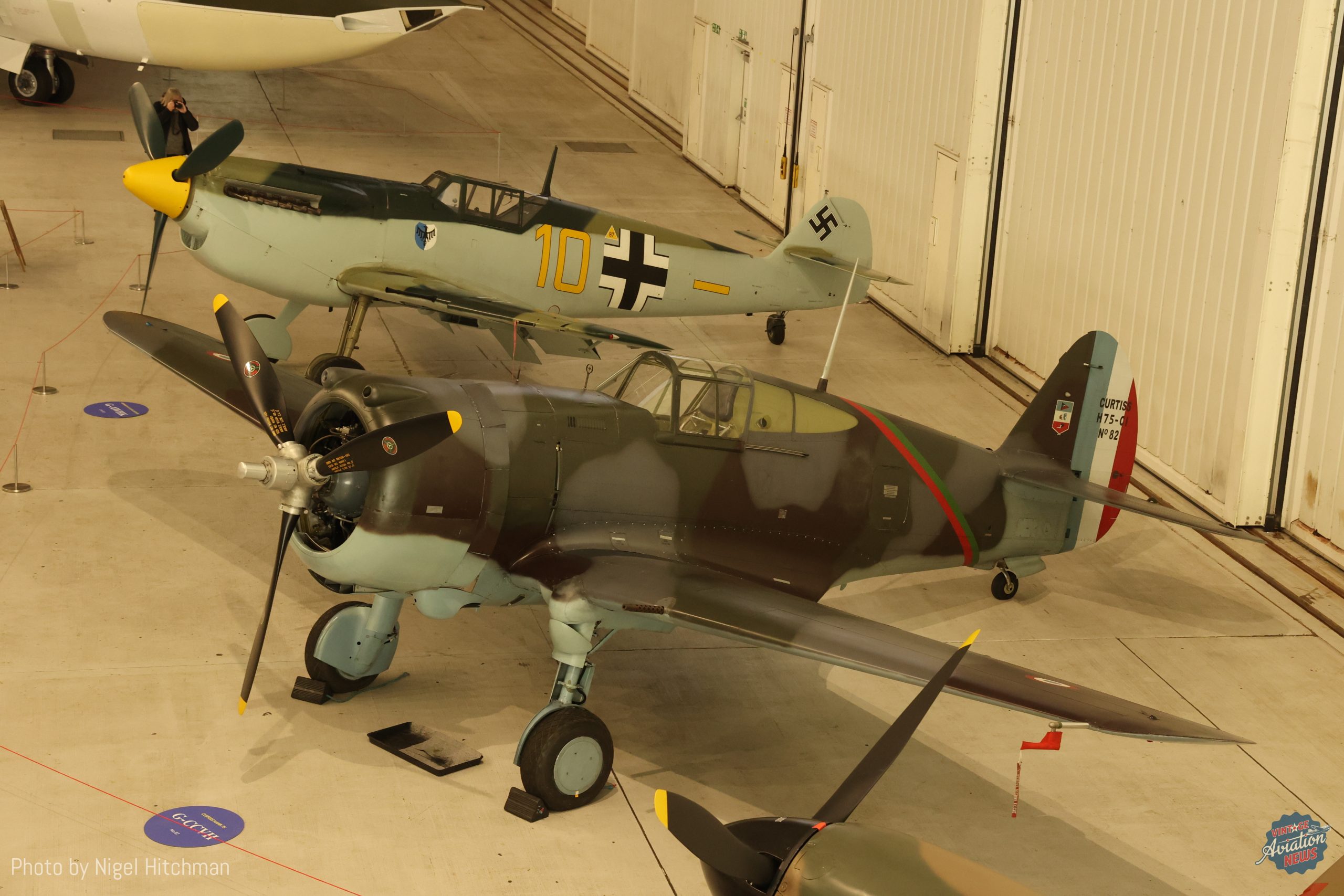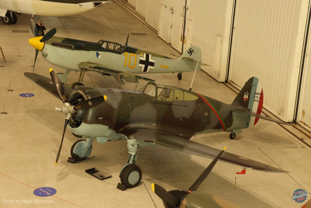 Built by Curtiss in Buffalo, NY in 1939 and delivered to the French Air Force in April 1939, this Curtiss Hawk-75 No.82 G-CCVH was issued to 1ere Escadrille, Groupe de Combat 11/5 Lafayette at Reims, where she carried the command stripes on the fuselage of the personal aircraft of Commandant Murtin, CO of both GC 1/5 and GC 11/5. She moved to Toul during the Battle of France, and then on to Oran in Algeria before being taken over by Vichy control. The Hawk maybe have even been in battles with the RAF and USAAC in North Africa. After the war it served in a training role at Cazaux western France and ended up in storage from 1950 until acquired by The Fighter Collection in 1995. It was restored by Fighter rebuilders at Chino, flying again in 2004 and first appearing at Duxford in 2005. It wears an authentic Armée de l’Air standard three-tone scheme, with her GC 11/5 markings on her port, and the Lafayette Escadrille Sioux Indian head motif (the TFC logo) on her starboard side. Currently the only airworthy Hawk 75, together with the P-36 at Duxford, there is also a static Hawk 75M in Thailand and P-36 in the NMUSAF at Dayton. The only other known survivor is a former Norwegian AF Hawk 75 which was also then operated by the Luftwaffe and finally Finnish AF where it had an illustrious history and is currently being restored at Avspecs in New Zealand for the Military Aircraft Museum at Virginia Beach.