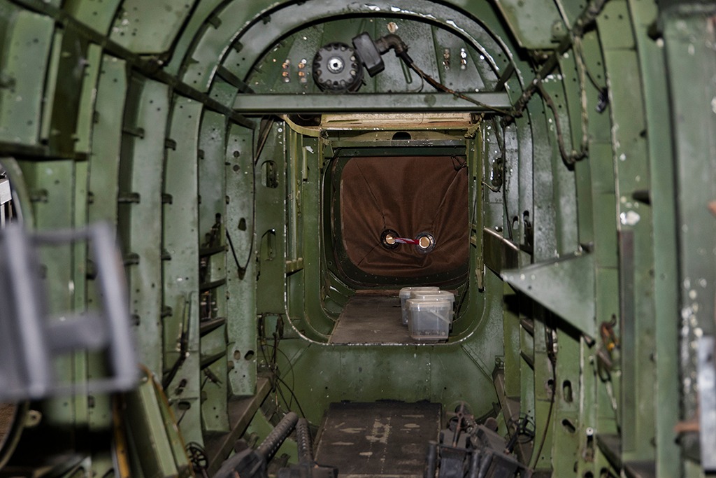 A view inside the Mitchells rear fuselage, looking back towards the tail gunner’s position. (Photo via Lincolnshire Aviation Heritage Centre)