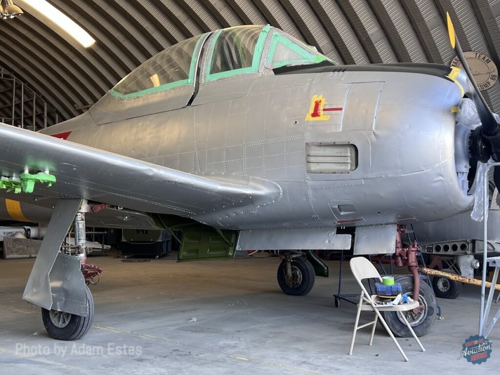 The second Trojan, T-28A USAF #50-0203, was obtained by the museum and came from a rather unusual venue, the Ruckus Paintball Range in Albuquerque, New Mexico, where the aircraft was half-buried in the sand with tires stacked around it. This aircraft was accepted into the USAF on April 30, 1951, and served at Reese AFB near Lubbock, Texas, and Spence AFB in Moultrie, Georgia. With the arrival of the Jet Age, ‘203 was placed into storage at Davis-Monthan AFB in Tucson, Arizona on December 16, 1957, before being transferred to FAM through the Military Assistance Program (MAP) on September 11, 1958. Little has been published about the aircraft’s time in Mexico, or exactly how it ended up on the paintball range. Fortunately, though, just as the MFAM’s restoration and recovery team was already seeking another training aircraft, Ruckus Paintball agreed to sell the Trojan. So, in 2021, a recovery team led by Alex LaBonte Jr. and Greg Stathatos, picked up the Trojan from Ruckus, along with a Nanchang CJ-6 fuselage from another owner. Shortly after the team had set out for New Mexico, their trucks and trailers arrived back at March with the two old trainers in October of that year, ready to become the latest restoration projects at the museum.