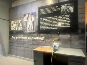 Traveling the same old route is just a path to… obsolescence, really, if you don’t adapt and create dynamic programs and exhibits. In our ‘Women Answer the Call’ exhibit, which features the Rosie the Riveter story, visitors get to actually buck a rivet and see how good they are using compressed air and a bucking bar. So when they walk away, they don’t just read a placard about Rosie the Riveter, they actually get to feel some of what Rosie felt as a riveter.