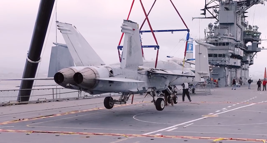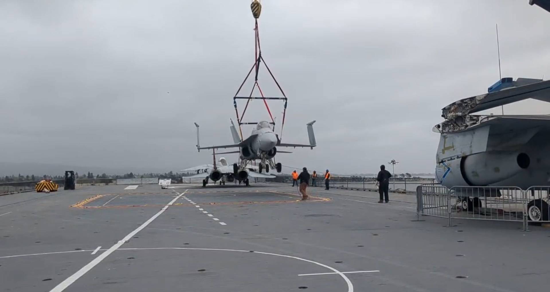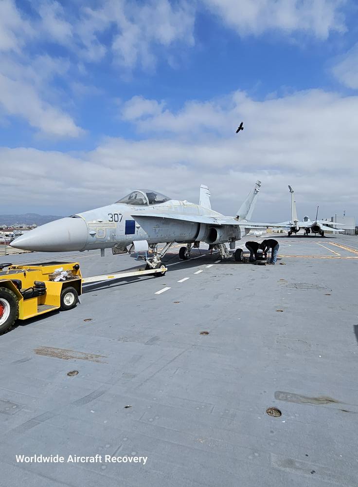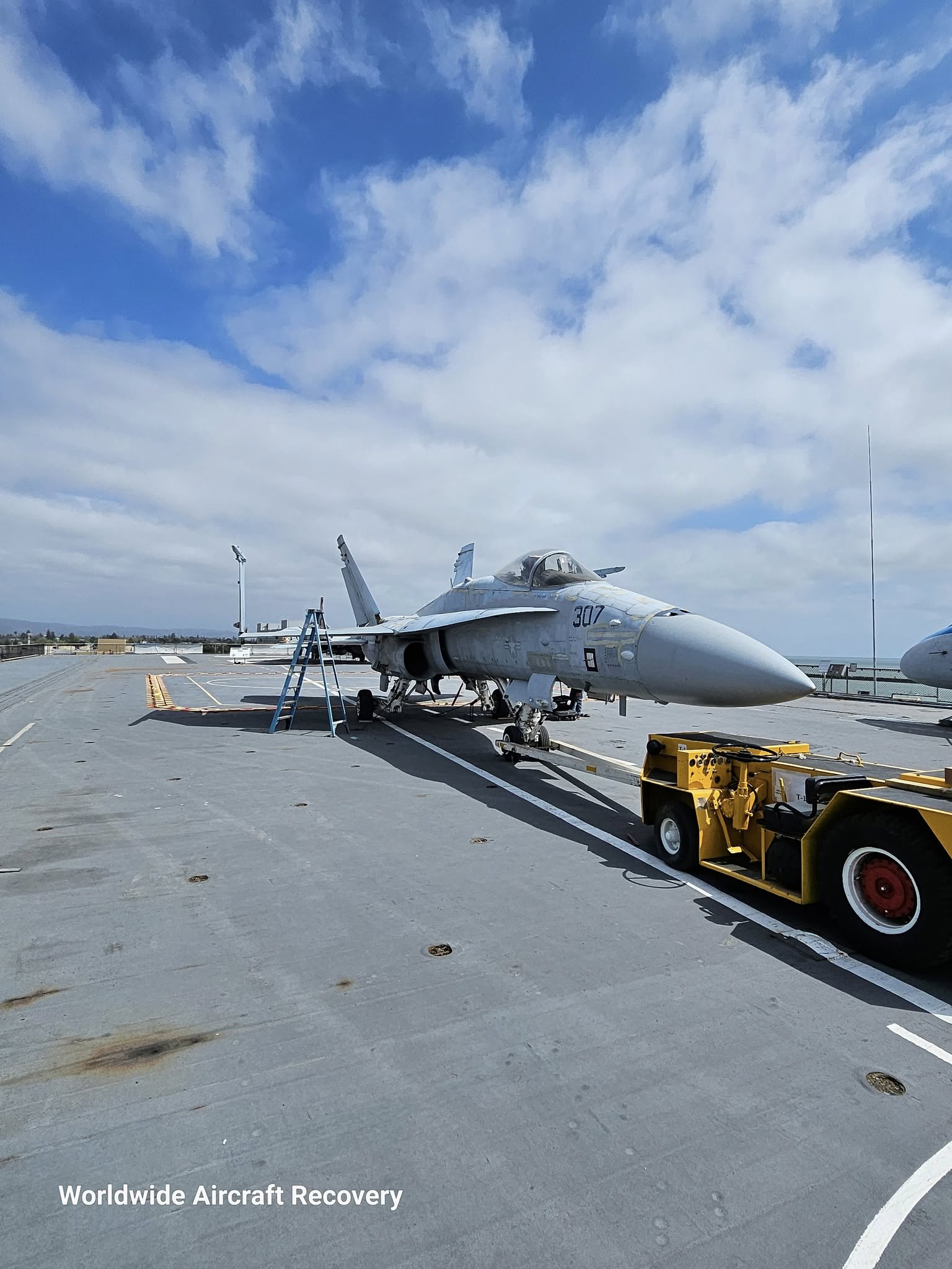 With the Hornet flown from Pensacola, Worldwide Aircraft Recovery had another team in California that unloaded the aircraft from the C-5M and drove it down to the USS Hornet, where a mobile crane was used to hoist it onto the flight deck of the carrier, where it was later dedicated on April 26. With the F/A-18C Hornet now on display aboard USS Hornet, the museum will display it alongside other aircraft already on display aboard the World War II aircraft carrier that also recovered the Apollo 11 astronauts. For more information, visit the USS Hornet Sea, Air and Space Museum’s website HERE.
