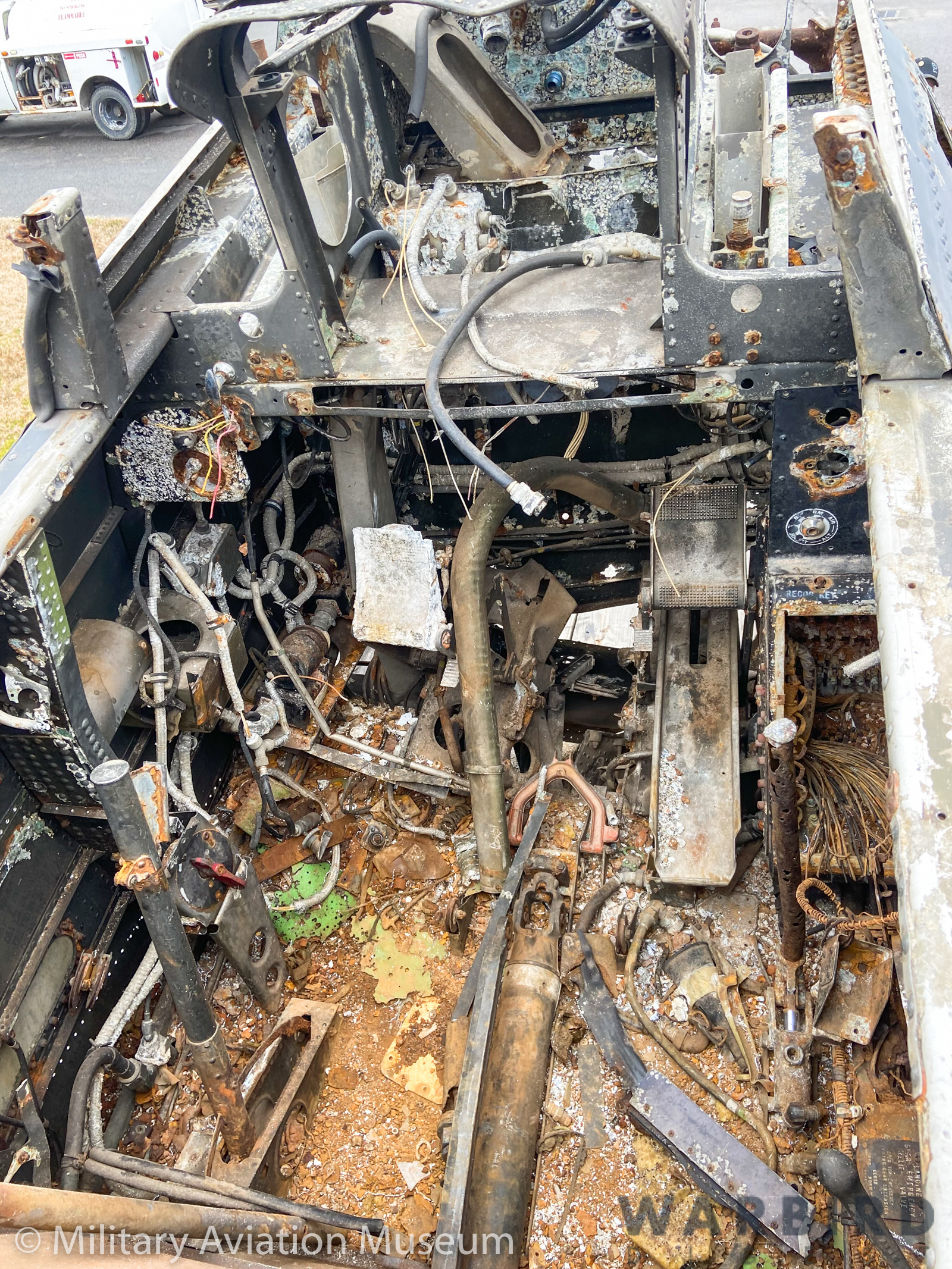 With such a short operational life and no combat record, Bu.36175 sat in storage for 25 years at the Naval Aviation Museum in Pensacola, becoming a Christmas tree of sorts to provide much-needed parts to repair/restore other more storied examples of the breed. In the process, she lost her outer wing panels, engine section and a number of other components, so that what remains today consists mostly of the fuselage, from the firewall back, and the tail feathers.