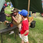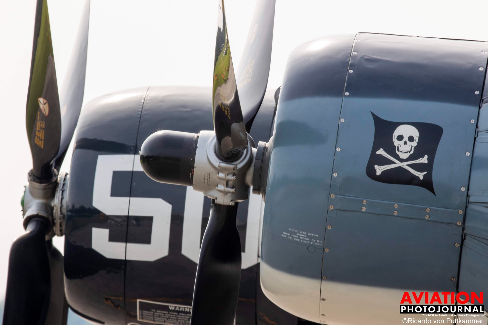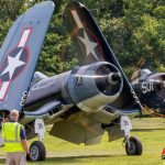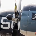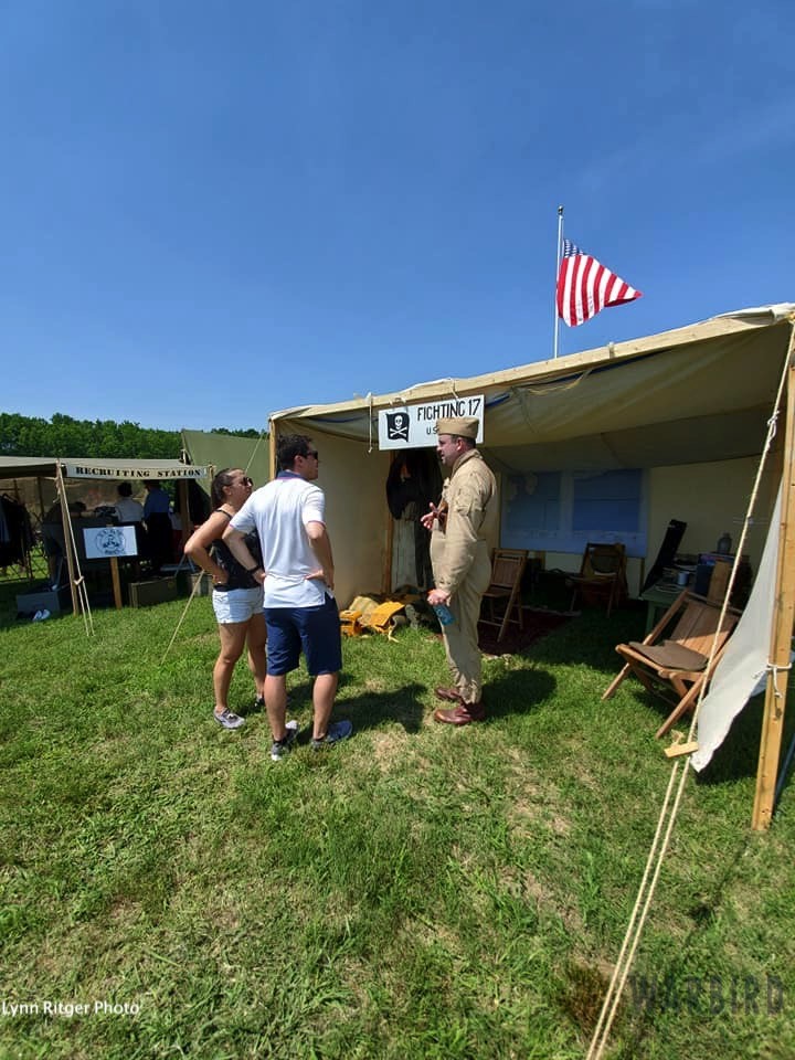 As an example, for the WWII show, our group, the Old Dominon Squadron of the Airmen’s Preservation Society, sets up to represent the immortal “Jolly Rogers” of VF-17, the US Navy’s oldest, continuously active squadron, to help tell the story of Lt. (JG) Shelton “Ray” Beacham, who hailed from Kitty Hawk, North Carolina. Indeed, the Military Aviation Museum’s own FG-1D Corsair is painted to represent Beacham’s F4U-1A BuNo 17668 White 31, the aircraft in which the aviator scored the first aerial victory for the Jolly Rogers. Our goal was to help provide the context behind Beacham’s service so that Museum visitors might better understand the significance of that aircraft. Given how popular the Corsair is, we fielded a lot of questions from visitors about the aircraft and the unit, and had the good fortune to have a few actual VF-84 veterans come through the camp who invariably broke into a huge grin when they saw the FIGHTING 17 sign on our HQ tent!