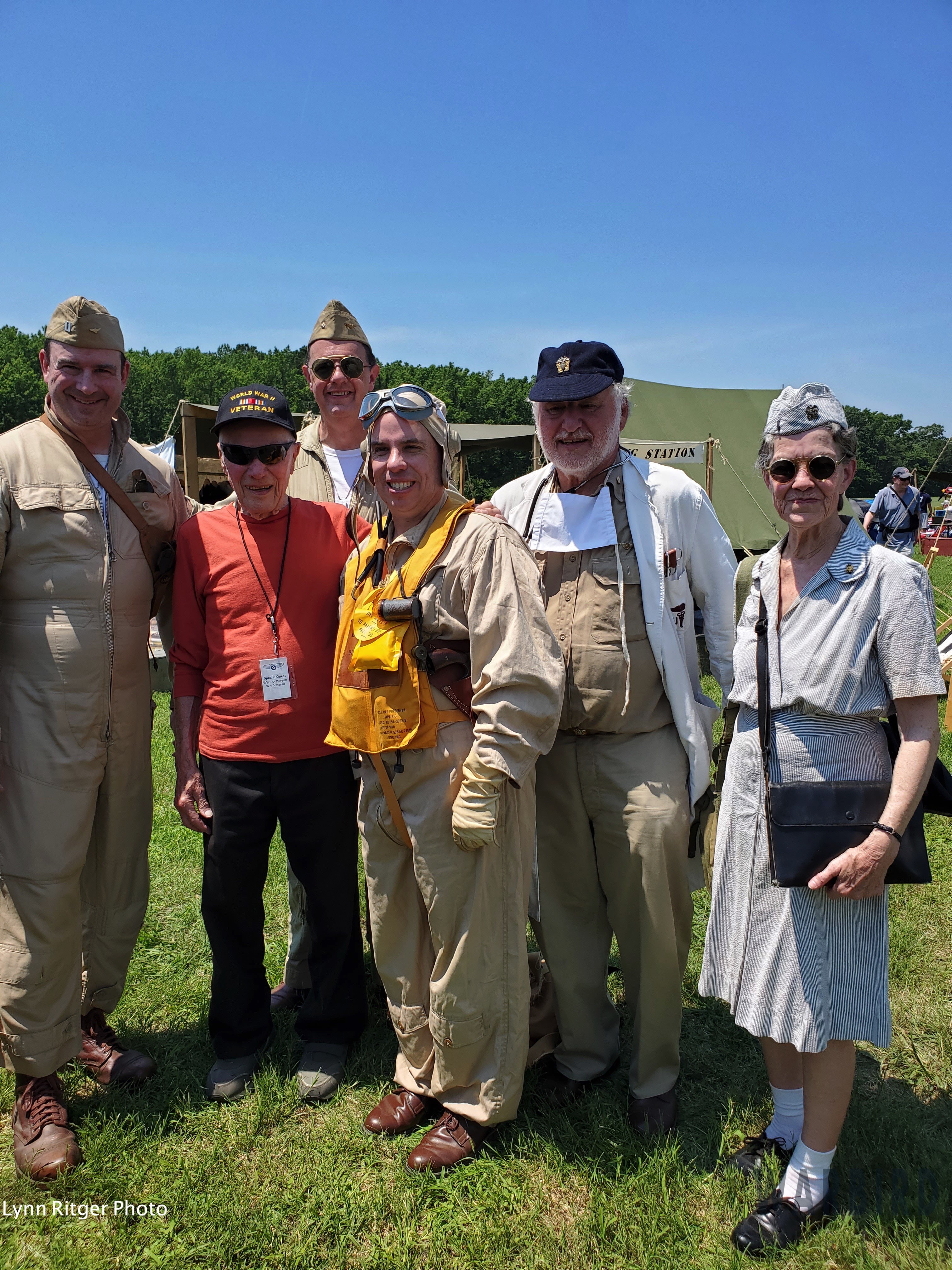 And to the eternal credit of Jerry Yagen and the entire team at the Military Aviation Museum, they find tremendous value in having us as part of the show. Units come from all over the country to take part in shows put on by the MAM, representing almost every major combatant. In the 12 years I have been doing this, I’ve seen groups and individuals representing American, British, Canadian, Australian, Polish, German, Soviet, Chinese and Japanese combatants as well as French partisans, and of course civilians in period attire. And in my experience, the crowd universally appreciates it, as they come through our camp and talk with us, we have heard some amazing stories. A case in point occurred at this past weekend’s show; a kind, elderly gentleman came through with his son, and we started talking with him. It turned out that his name was LCOL Harold Hadder, and he had flown 75 missions in F-80Cs with the 16th FS, 51st Fighter Wing out of Suwon during the Korean war. He also flew some 200 missions in A-1 Skyraiders with the 6th Special Operations Squadron in Vietnam, serving as that unit’s CO between May and November 1969. Listening to him talk about the flak around Pyongyang and how much fuel he had to carry to get from Suwon to the Yalu was just incredible! We met another man who worked for Grumman at Bethpage in 1942 before joining the Navy and then working on the same Wildcats he had been building six months earlier – that man actually met “Butch” O’Hare when he came to Bethpage on a war bonds tour after his epic defense of USS Lexington in early 1942! We got to shake the hand of a man who had actually met Butch O’Hare – how incredible is that? And we hear stories from regular men and women, whether about their service or that of a relative – the latter are often our most meaningful encounters, because the men and women who defeated Hitler, Mussolini, and Hirohito rarely spoke much about their service after they got home. They just saw it as a job to finish before getting on with their lives, so our conversations with their family members are often poignant. As an example from 2013, when the Boeing B-17 known as the Movie Memphis Belle came out to Chesapeake, three of us got our USAAF gear and set up a small display in front of the airport terminal to talk to visitors. As I was struggling to get into my 1945-vintage alpaca lined flight pants (this was in July – those are not super comfy in July), a woman came out of the terminal and suddenly her hands flew to her face in shock. I asked if she was ok, and she said, “Is that what my daddy looked like?” As I started to explain that yes, if he flew on a Fortress, this is the sort of gear he would have worn, she stopped me and said, “Can I give you a hug?” It turned out that her father was a top turret gunner/engineer on B-17s during the war, and had passed away two weeks prior…