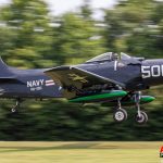Sunday’s attendance was also very good, but not as big a crush as Saturday, perhaps due to the remnants of tropical storm Claudette whose outermost edge began affecting the field at around 1pm. Rain started to move into the area by 3pm, after which Museum staff decided to bring the show to a close to avoid the potential problems which could have followed. To close out the show, the Museum’s P-51D Mustang, marked as Double Trouble Two, put on one of the most energetic displays seen in quite a while at the MAM (all within FAA-mandated limits, of course). The crackle and roar of that aircraft’s beautifully maintained Packard Merlin rang out across the field as the Mustang raced around below the low ceiling – it was wonderful to experience, and brought the show to a fittingly climactic conclusion.