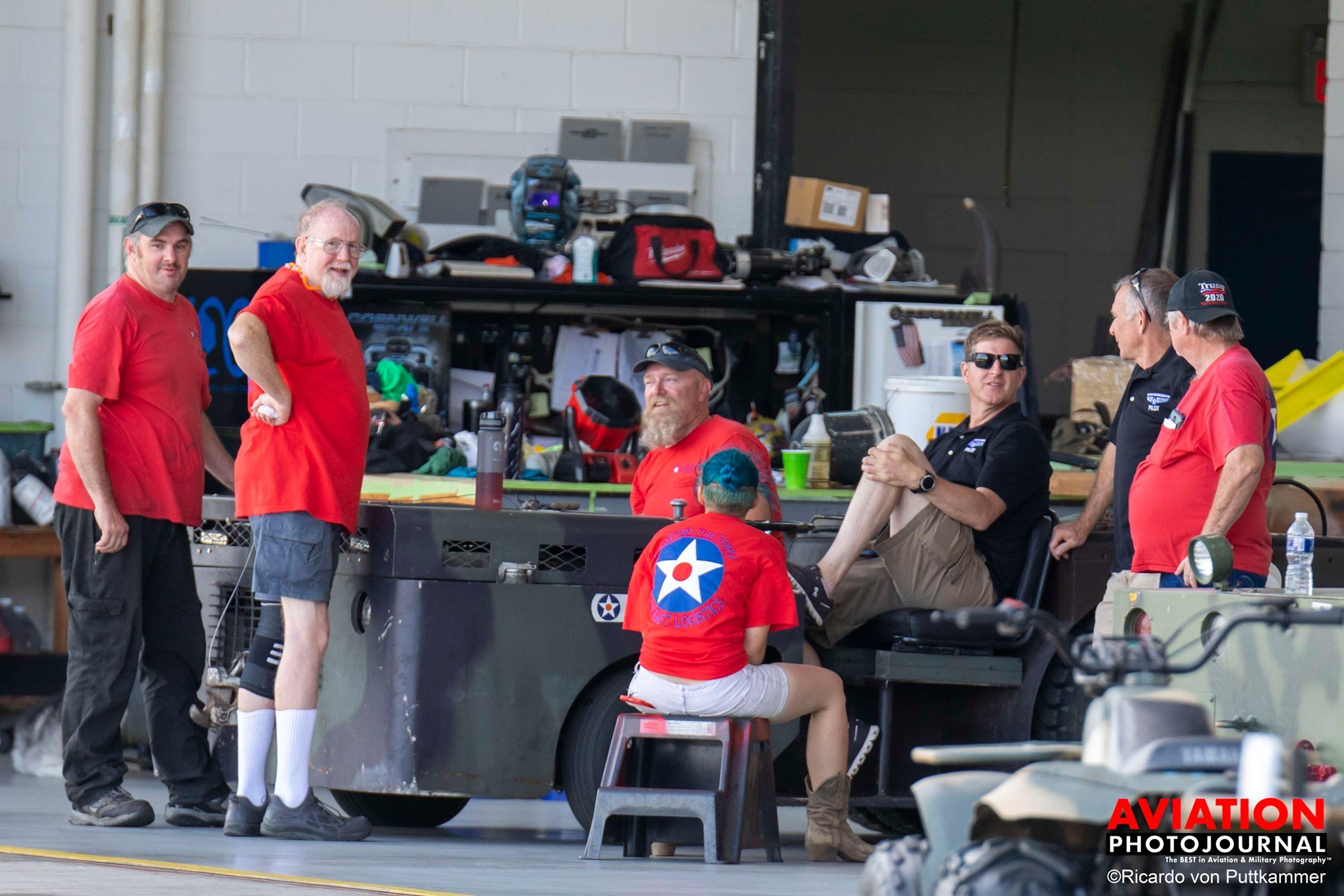 The number of people flowing onto the Museum’s grounds over the weekend was both astonishing and gratifying; in talking with tired but elated Museum director Keegan Chetwynd on Saturday night, attendance was well into the thousands in spite of temperatures being in the 90s and a heat index north of 100°F. At times on Saturday, it felt a bit like a warbird-themed Disneyland, as there were just so many people! The food vendors saw lines more than 50 people deep for much of the day. But best of all, the vibe from everyone we met was one of profound enjoyment, even gratitude, and this positive sensation extended to Museum volunteers and staff, and every single one of us out in the living history encampments. Indicative of how much the Museum values the contributions of their volunteers and living historians, each morning Keegan brought 20 lb bags of ice to each encampment along with an entire box of pastries for each unit, and a cookout was held for all of the other show volunteers later in the day. That sort of understanding just doesn’t happen anywhere else, and is another reason we love participating in shows at the MAM so much… they genuinely appreciate our efforts and our contributions.