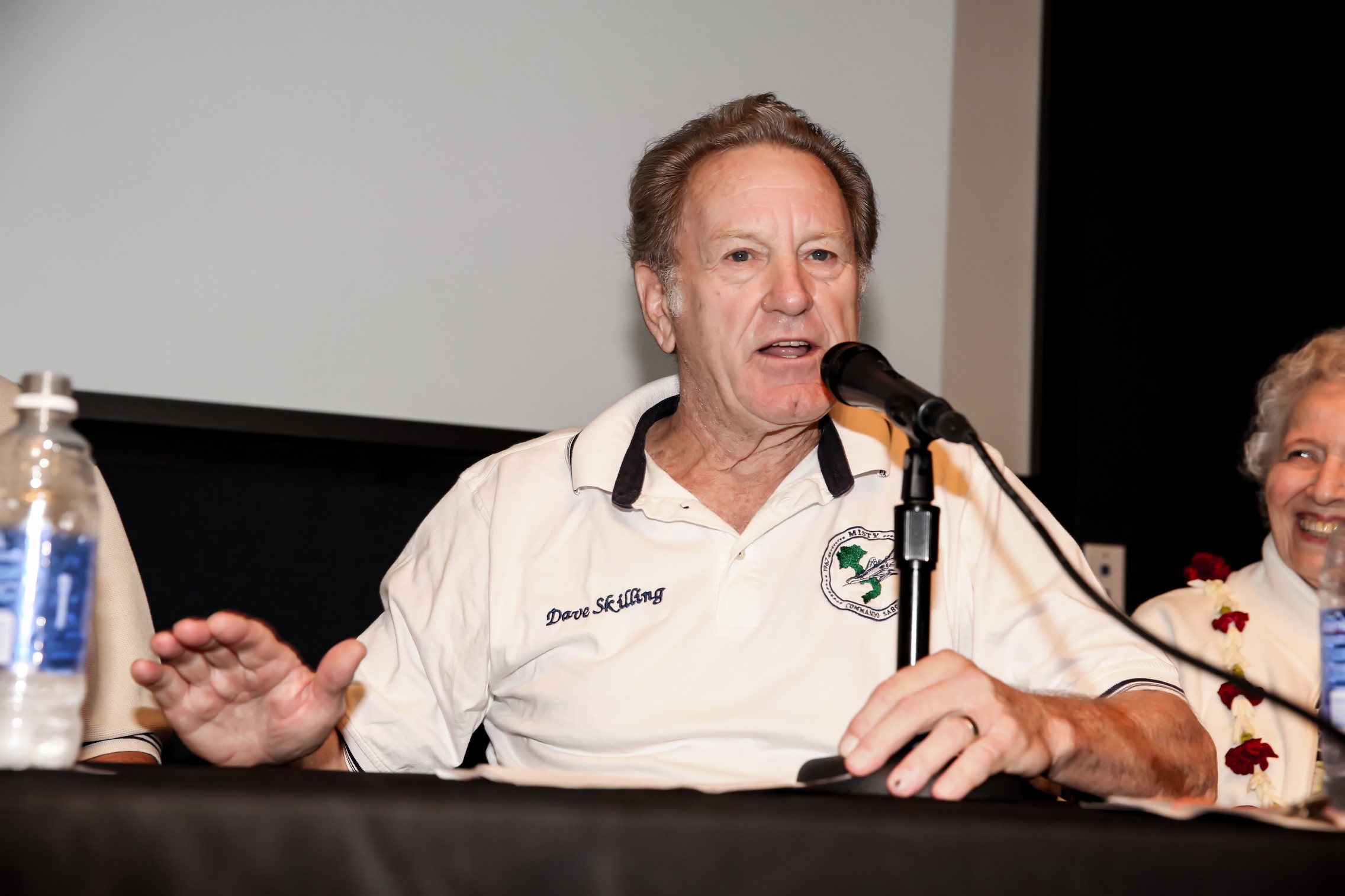 PRESS RELEASE — Marking the 50th Anniversary of the Vietnam War, “Misty” pilots reunited on October 30, 2014 at Pacific Aviation Museum Pearl Harbor on Ford Island, Honolulu, Hawaii. The day included a tour of the Museum’s two hangars and 45+ aircraft, a panel discussion and book signing of Misty and Bury Me Upside Down, and the Museum’s North American F-100F Super Sabre dedication to Col “Bud” Day, call sign Misty 1, the first commander of Operation Commando Sabres, Vietnam prisoner of war and Medal of Honor recipient, and to Col “Lacy” Veach, Misty 93 pilot and Hawai’i’s second astronaut with NASA who flew on two missions of the space shuttle Columbia.