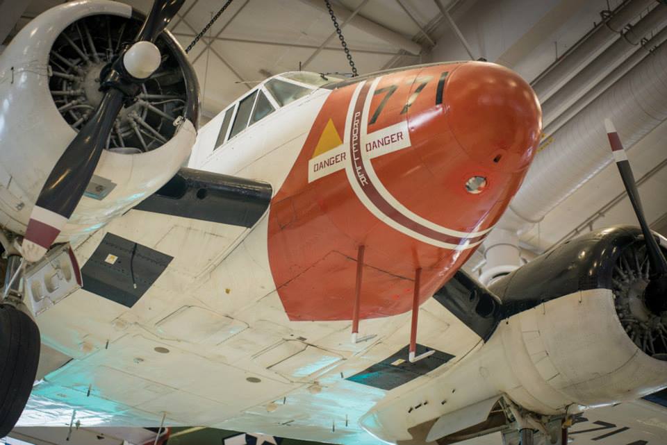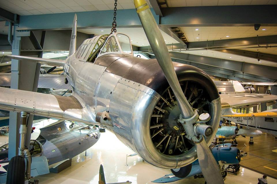 This Battle of Midway veteran was accepted by the navy in December 1940 and assigned Bureau Number 2106. The plane was plane was parked on Ford Island in the middle of Pearl Harbor on the fateful day of the Japanese attack. Aboard the USS Lexington (CV-2), the participated in a mission on March 10, 1942 along with 103 other planes from the Lexington and Yorktown (CV-5) that earned her pilot the Navy Cross. Later assigned to Midway, on the morning of 4 June 1942, this Dauntless was one of sixteen SBD-2s launched to attack Japanese aircraft carriers to the west of the atoll. Approaching the enemy carrier Hiryu, the Marine planes came under heavy fire from antiaircraft gunners and fighters of the enemy combat air patrol. With two Zeroes on her tail, the plane released her bomb at an altitude of 800 feet, though during their egress from the target area, the Zeroes in Pursuit pursued increased to four and chased the Dauntless for miles. The plane was struck with enemy bullets 219 times, knocking out the hydraulic system and wounding the gunner. One bullet came so close that it clipped the pilot’s throat microphone cord. Nevertheless, the plane managed to return to Midway, making a one-wheel landing on the atoll, one of only eight SBD-2s to return from the attack. For their actions, the pilot received the Navy Cross and the gunner was awarded the Distinguished Flying Cross. Returned to the United States, the SBD-2 was repaired and assigned to the Carrier Qualification Training Unit at NAS Glenview in Illinois. On the morning of June 11, 1943, the aircraft was ditched in the waters of Lake Michigan during an errant approach to the training carrier USS Sable (IX 81). While the pilot was retrieved from the water by a Coast Guard rescue boat, the aircraft sank to the bottom of the lake. Recovered in 1994, the aircraft underwent extensive restoration at the museum before being placed on public display in 2001. A survivor of the Pearl Harbor attack and two extraordinary combat actions, including the famous Battle of Midway, it is one of the most historic aircraft in existence anywhere in the world.