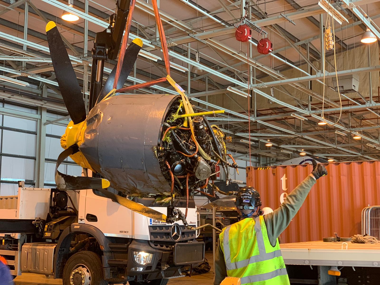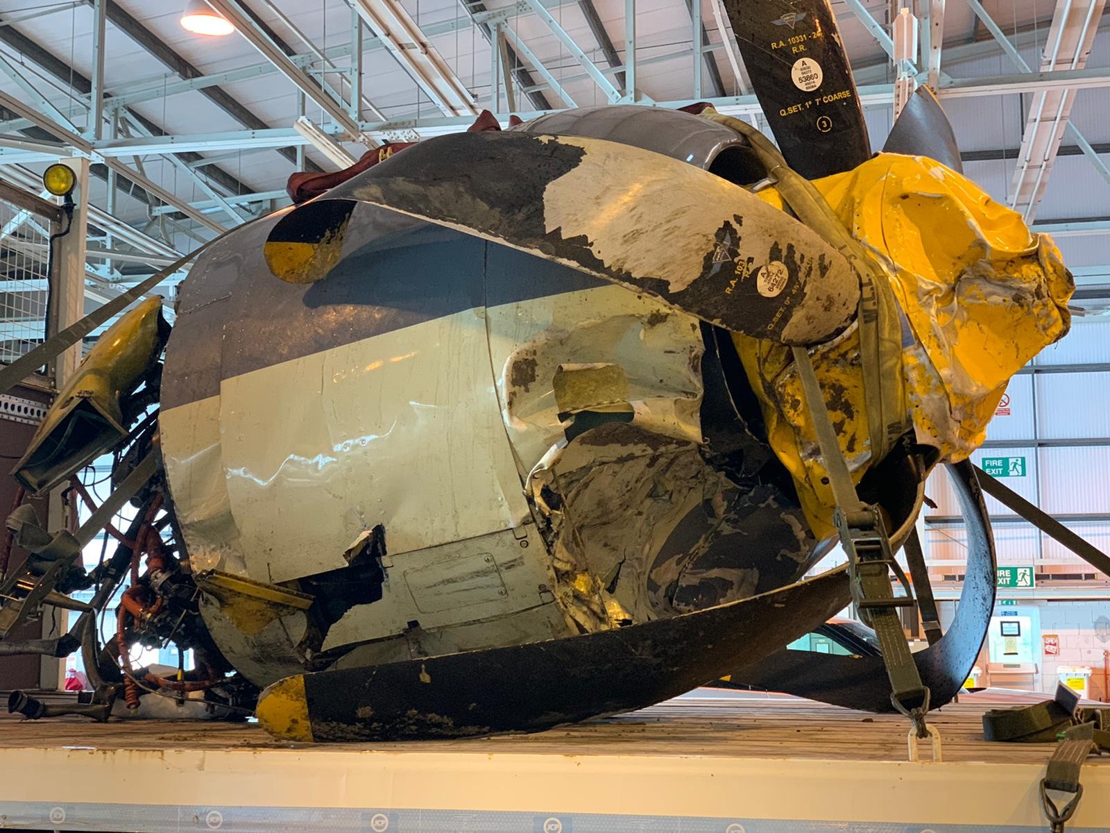 The Sea Fury has been recovered to the heritage hangar by the Joint Aircraft Recovery and Transportation Squadron (JARTS) working closely with the Navy Wings team. JARTS were working in the area on a training exercise and provided their expertise and experience to help us recover the aircraft. The aircraft is now secured and we await the next stage of the investigation process to start. Images of the recovery process can be seen below.