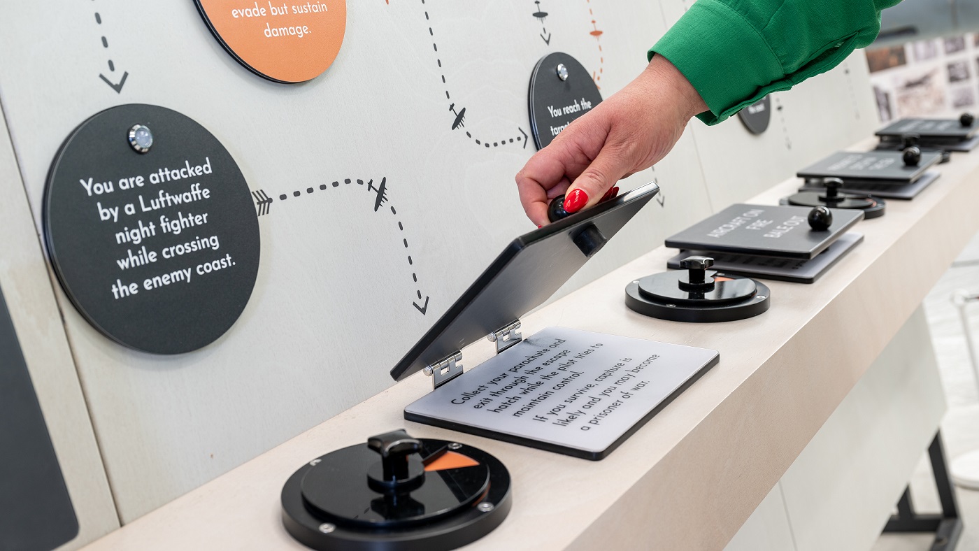 Interactive elements of the display will encourage participation from visitors of all ages. Learn about ordnance, navigation, protecting the bombers, pathfinders, and an unpredictable enemy – the weather! A timeline shows the key activities of Bomber Command during the Second World War and illustrates how bomber aircraft and tactics changed. View animations, video footage and personal accounts in a series of videos. Have your say and contribute to the debate about the RAF’s contribution on the wall of reflection.