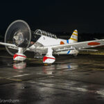 Coordination for such an event is a challenging task. Many thanks are due to Peter Lerro Productions for supplying the lighting expertise, Eric Miller and Pat Robinson for safely positioning the subject aircraft, and to the aircraft owners Christian Kappler (N2S-5), Commemorative Air Force (P-63A), and the Mid-Atlantic Air Museum (‘Val’ replica). Last but not least, we must also send hearty appreciation to the local Fire Department for supplying the equipment and water which genuinely makes this annual night photography event so special.