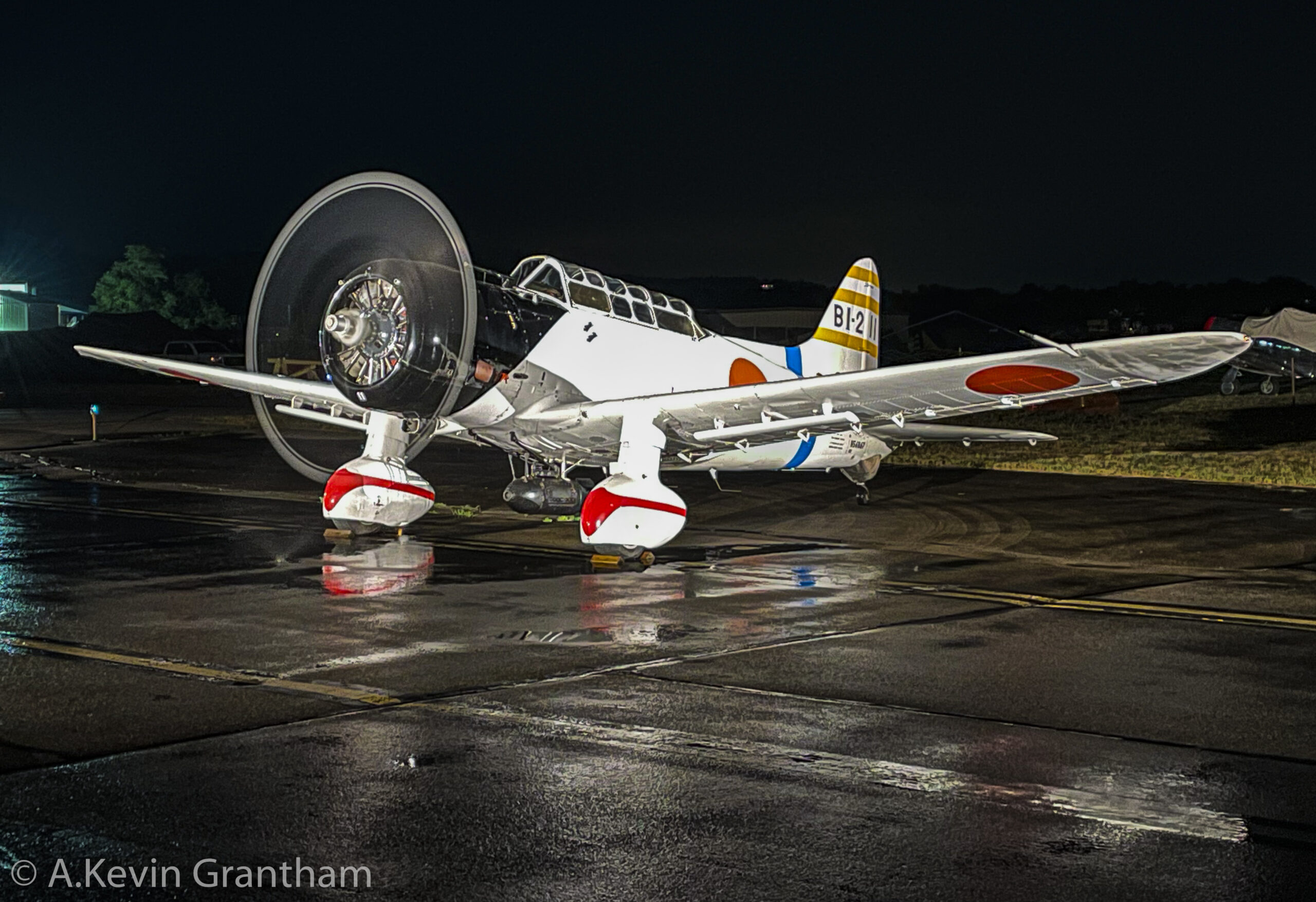 The Mid-Atlantic Air Museum's recently acquired Aichi Val replica looked magnificent during the nighttime photo shoot on June 3rd, 2023. The photographic event coincided with the museum's not-to-be-missed annual WWII Weekend air show. (photo by A.Kevin Grantham)