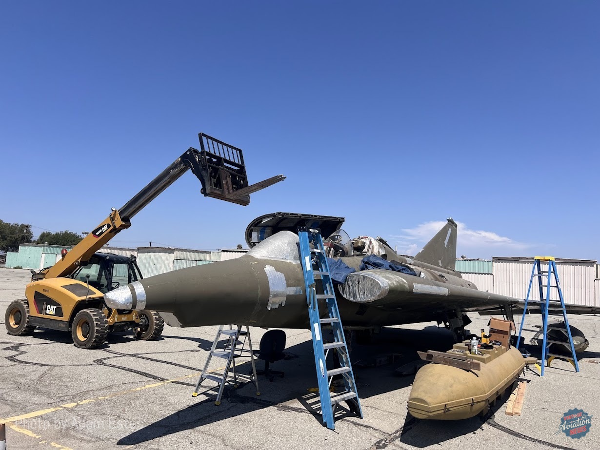 Now, Dean Soest, a former crew chief for Merizan and pilot Steve Alex were hired by the Palm Springs Air Museum to supervise the disassembly of the Draken. At one point, Soest and Alex got Casey Wright of the Yanks Air Museum to bring out a forklift to pull the ejection seats out of N155XD’s cockpit. But now the Draken has made it to the Palm Springs Air Museum, where Director Fred Bell is gathering information on the aircraft to facilitate a static restoration where the aircraft will be displayed in its original Danish colors. Now there is only one Draken left in Chino, but with interest in the Swedish-designed Mach 2 interceptor being ever-present, this one, Swedish Air Force serial number Fv35343/N543J may soon leave Chino at any time as well. For more information on the Palm Springs Air Museum, visit their website here.