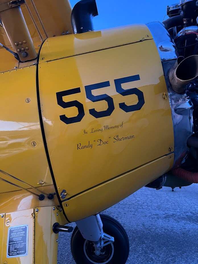 ![Locally known as Triple Nickel, Stearman N555BF now also carries a tribute to Randy "Doc" Sherman on both sides of the cowling. [Photo by Adam Estes]](https://staging.vintageaviationnews.com/wp-content/uploads/Planes-of-Fame-Air-Museum-Stearman-PT-17-painted-as-a-Navy-N2S-4-USAAF-as-41-8746_-Doc-Sherman-225x300.png)