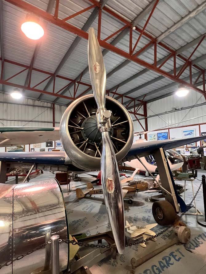 Located at the northern end of Santa Maria Public Airport, the museum is spread between two hangars, one of which owes its construction to the 1991 Disney film, The Rocketeer. The movie, an adaption of the eponymous comic book character created by Dave Stevens, saw Santa Maria serve as the fictional Chaplin Airfield, set in 1938 Los Angeles.Many of the picture’s flying sequences were filmed with local extras and vintage aircraft on hand, with the movie financing the construction of three hangars, a small building and the control tower to serve as realistic backdrops. Following The Rocketeer’s release, most of these sets ended up being demolished however, the primary hangar depicted in the film – plus its attached tower – were preserved so that they could become the home for a local air museum. The hangar was split in two and trucked from the film-site to its present position in 1992. Over the next seven years, the nascent museum worked hard to bring the hangar up to code, with a formal public opening taking place during 1999. The hangar presently displays the museum’s Early Aviation collection, which ranges from the dawn of flight until the outbreak of World War II. The museum’s second hangar houses aircraft and exhibits from World War II onwards. A handful of the museum’s larger, more modern aircraft are displayed on the tarmac between the two hangars.