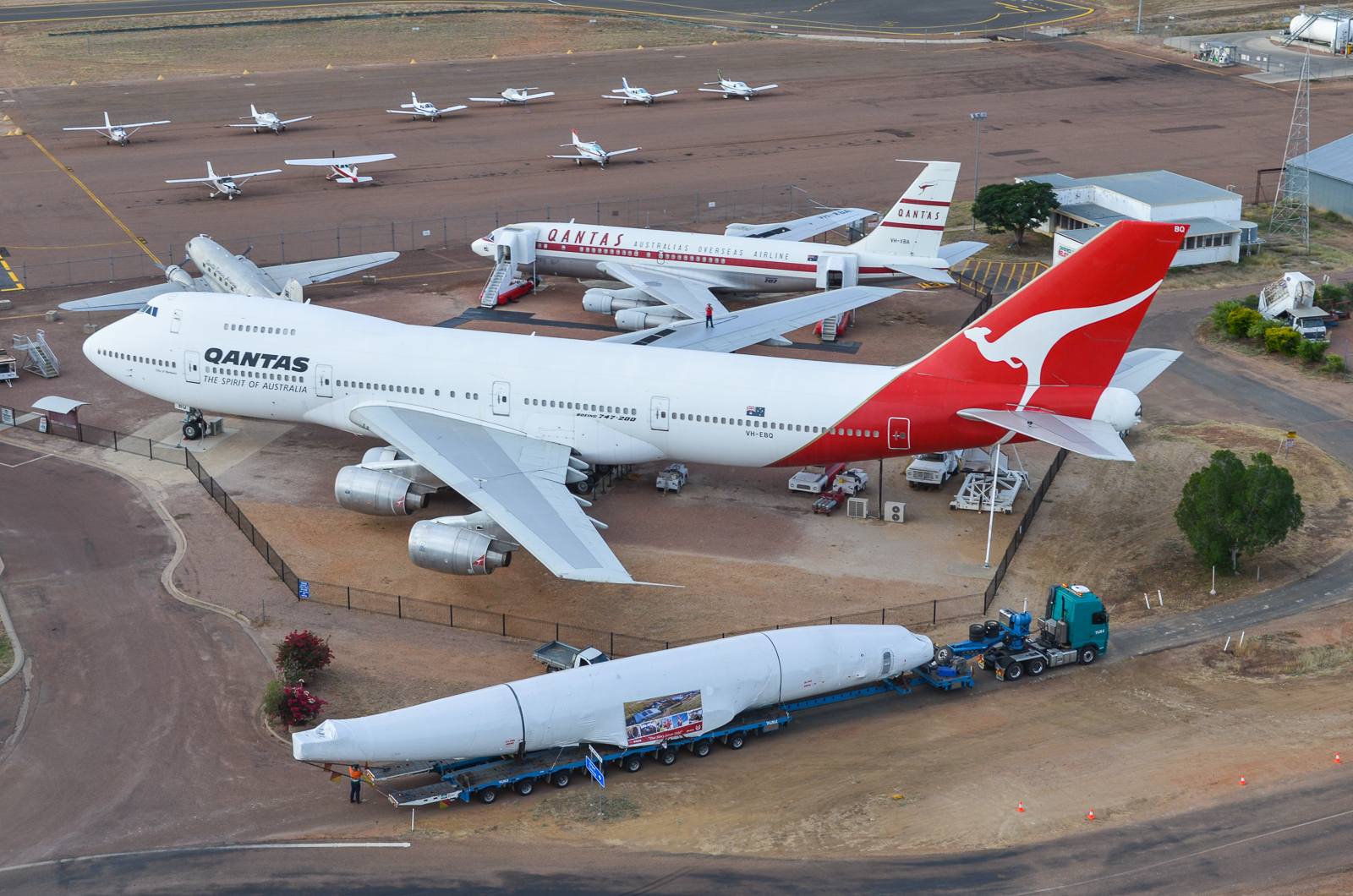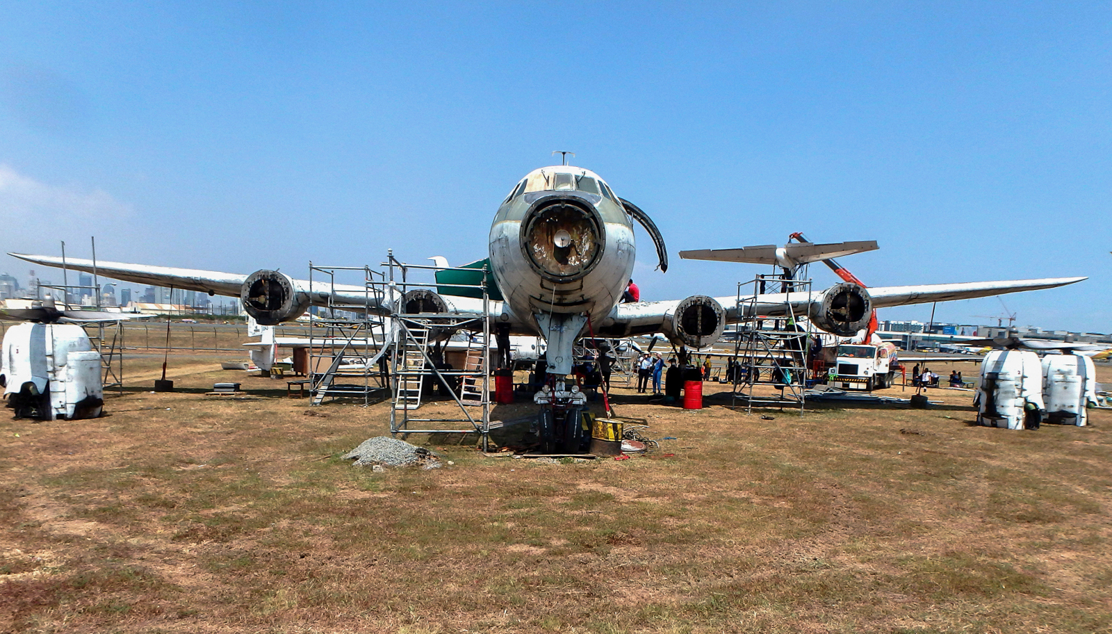 Qantas Founders Museum purchased the Super Constellation Aircraft in September 2014 from the Manila International Airport Authority where it had been abandoned for 26 years. Over the next two and half years, the aircraft was extracted from it mud-encrusted position, disassembled and transported by ship from Manila to Townsville and by truck from Townsville to Longreach, arriving in Longreach in late May 2017. A group of volunteers and contractors then worked tirelessly in trying conditions to restore the exterior of the aircraft including replacing corroded areas, reassembling the aircraft and repainting it in the Qantas Super Constellation livery which was completed in July 2018. In 2019 the interior display and cockpit restoration was undertaken.