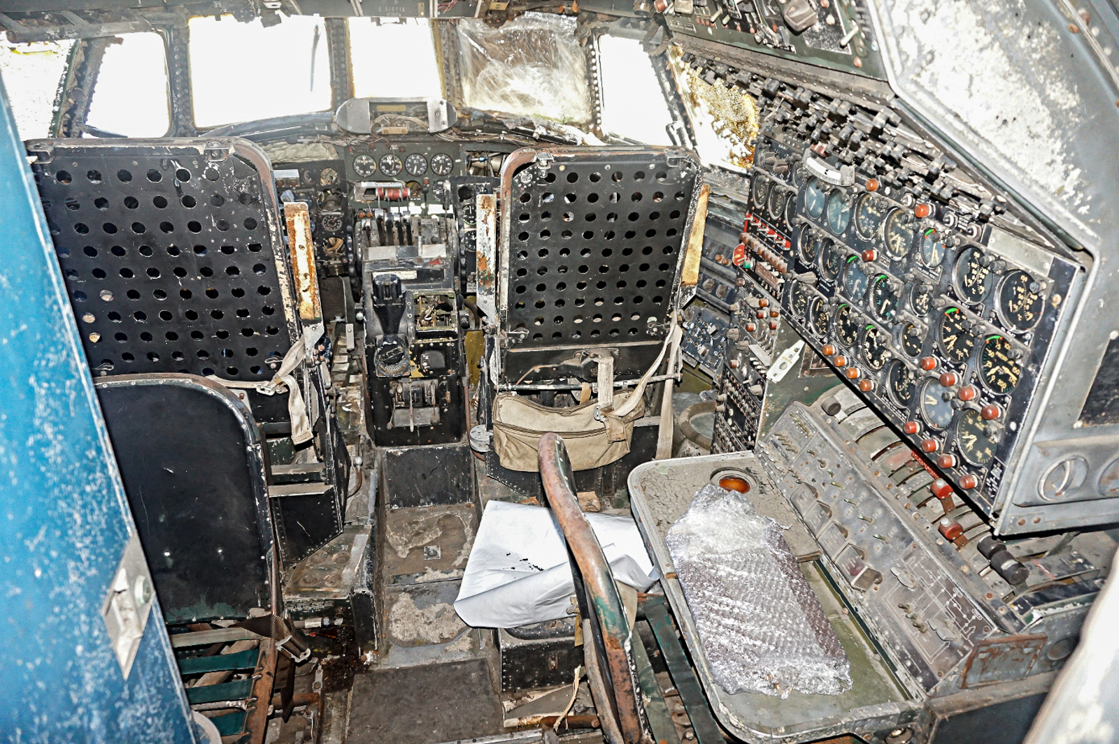 - Before work began in the cockpit it needed to be cleaned of years of dirt, corrosion and rubbish left behind panels and in corners. Some of this rubbish included a pair of khaki men’s jocks, which probably date from the aircraft’s military time, a cap that disintegrated on retrieval and a pair of flip flops.