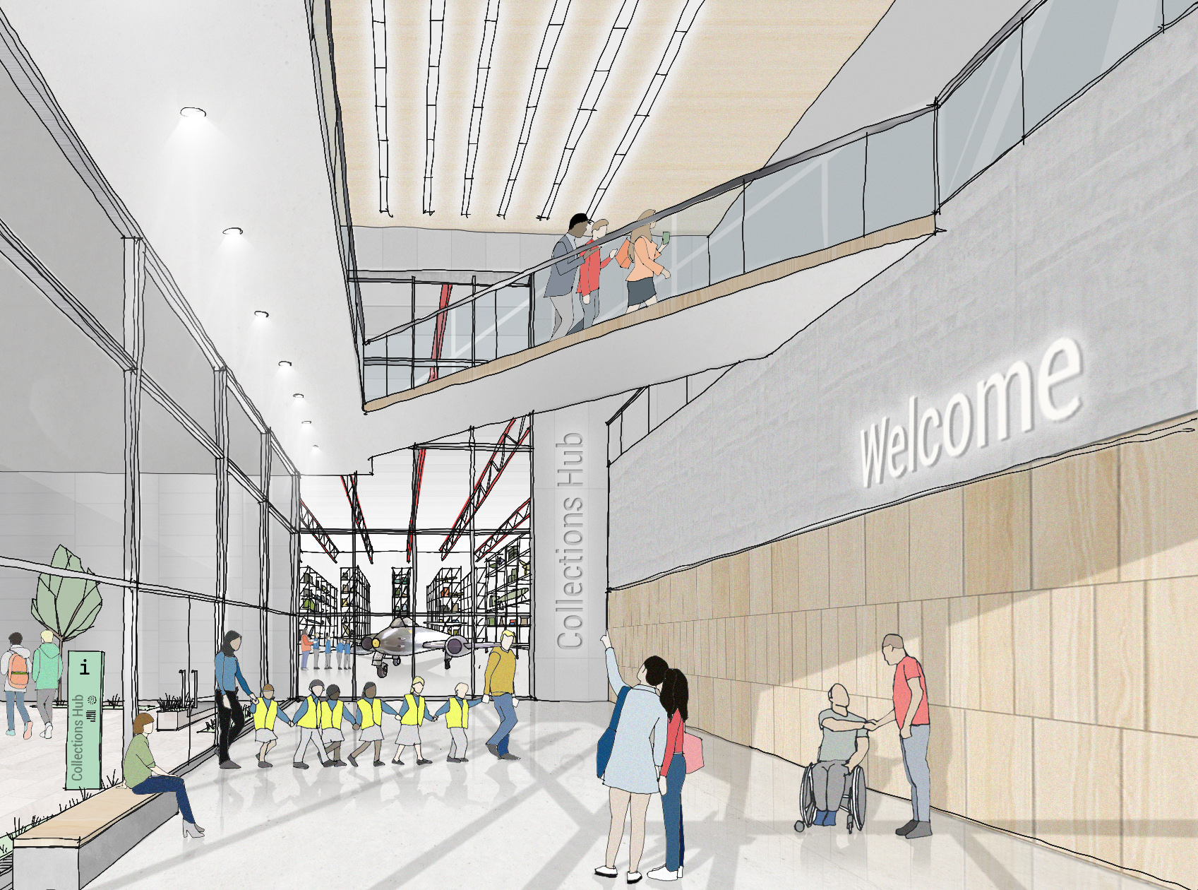 This ambitious project will deliver a major regional engagement program, alongside a site transformation. An immersive exhibition will explore today’s RAF, a new Learning Centre will provide bespoke facilities, and a purpose-built Collections Hub will enable the Museum’s stored collection to be shared with the public for the first time. The complementary development of a woodland landscape and a new public realm will encourage outdoor learning, discovery, and contemplation.