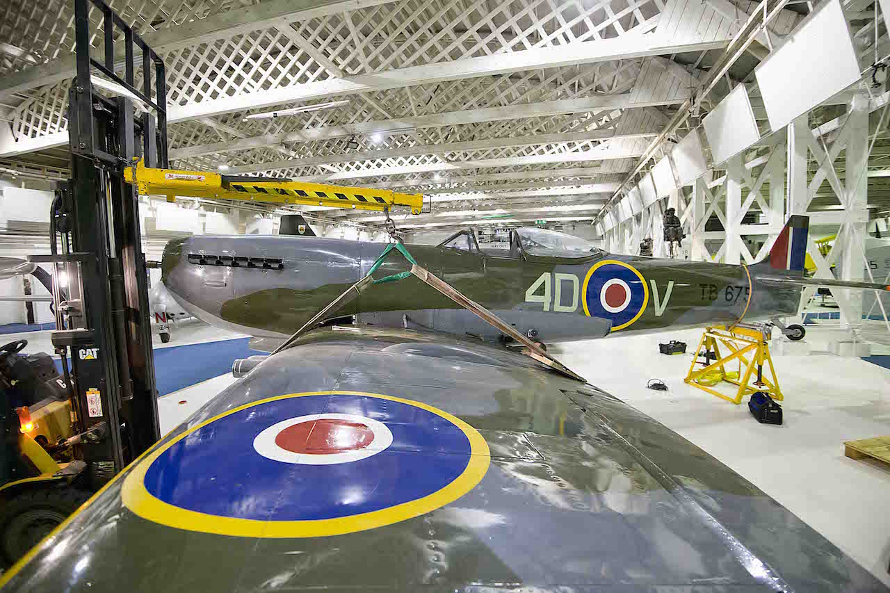 16 Mar 05 – By road to RAFM MBCC, RAF Cosford, for cosmetic attention prior to display in the ‘Living Museum’ forming part of the VE/VJ 60th anniversary celebrations in St James’s Park, London. Repainted as a wartime 74 Squadron aircraft, TB675/4D-V.