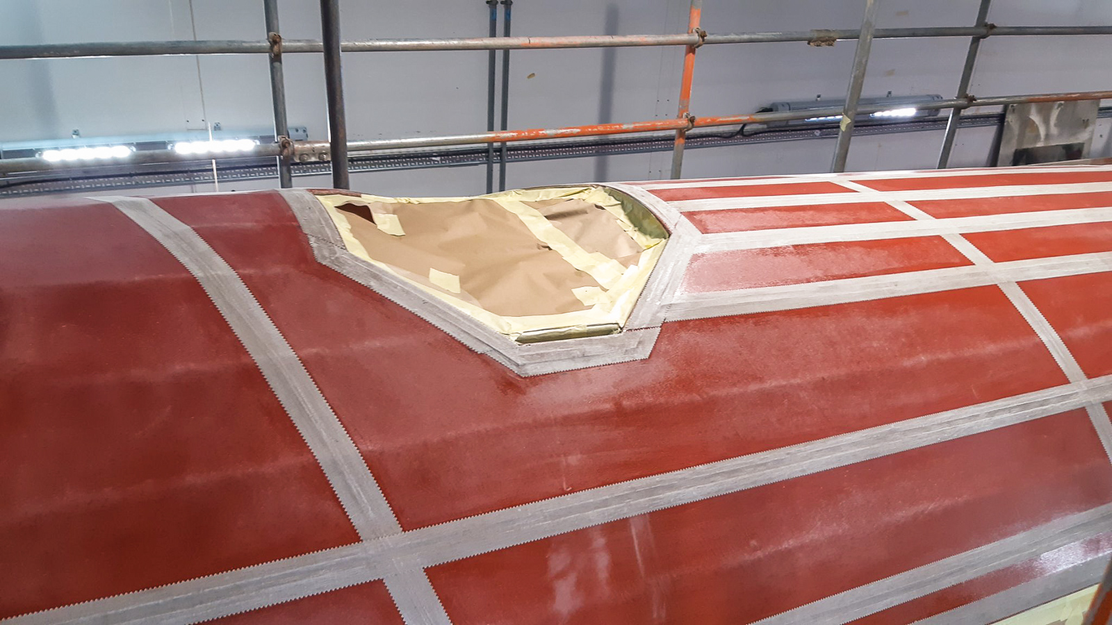 Since our last update, the top fuselage section has been covered in Irish linen and so far, two coats of red dope and one clear coat have been applied.