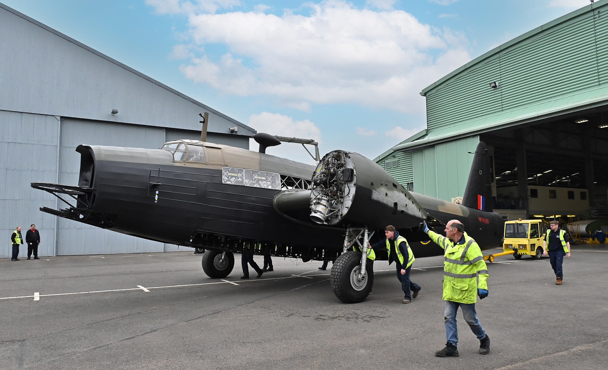 The fuselage and inner wings section can now be viewed by visitors, while the remaining work of attaching the huge 31ft outer wings, engines, propellers, and front turret to the aircraft will be carried out over the next few weeks. Members of the public will be able to view some of the final steps toward its completion as the Museum’s Conservation teamwork within the hangar.