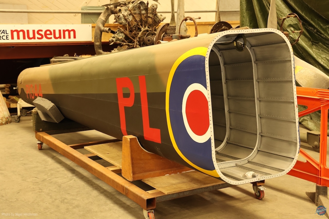 While restoration progressed gradually for many years, work has accelerated since 2014. The aircraft is now ready for public exhibition at the RAF Museum in Hendon. The rear fuselage is largely original, while the forward fuselage has been reconstructed using a combination of original components and new material. The tail boom is a newly built replacement, with the damaged original preserved for display. The tailplane incorporates approximately 25% original structure. Although the wings have not yet been restored, they are safely held in storage. Click HERE to read Nigel Hitchman’s recent update about the RAF Museum Midlands (Cosford) – Restoration, Storage, and Disposals