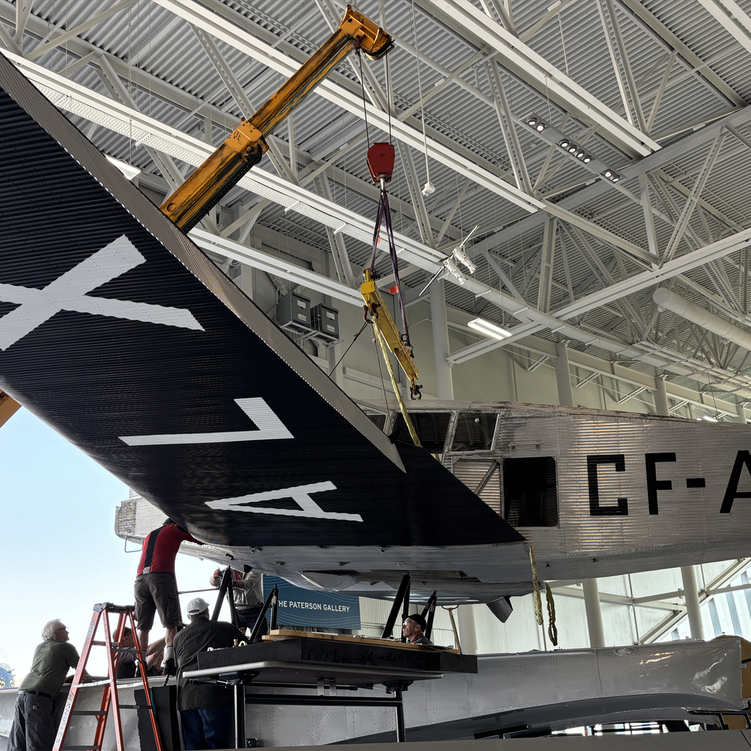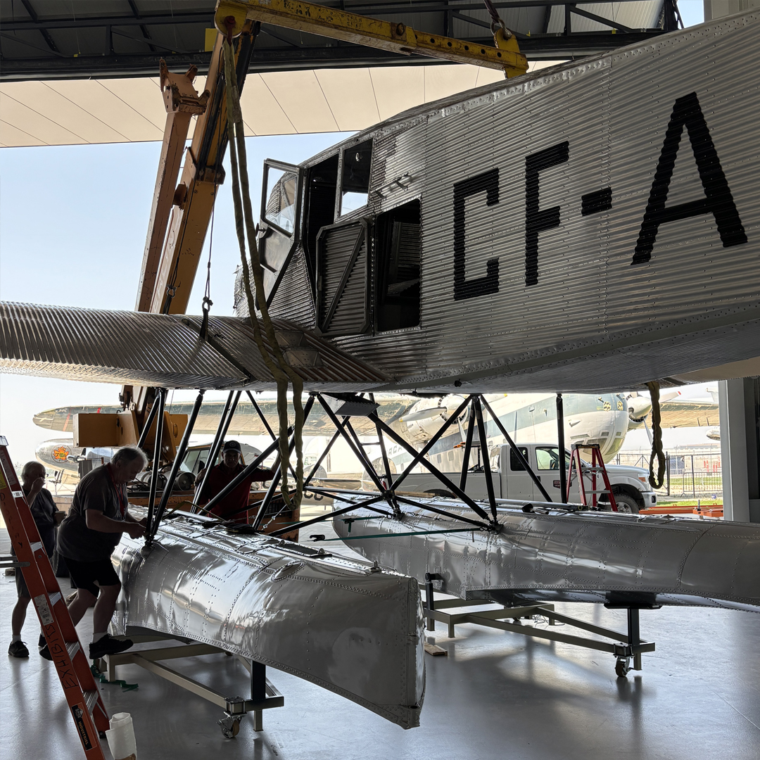 In September 2024, the King Vulture/City of Prince George made its third voyage across the Atlantic Ocean when was returned to the Royal Aviation Museum of Western Canada. Since then, the museum’s restoration team has been hard at work reassembling the Junkers F.13 to go on permanent display in the museum’s building at Winnipeg Richardson International Airport. By April 2025, the City of Prince George’s wings, horizontal stabilizers and vertical stabilizers were all reattached, and in May, the museum had the aircraft’s pontoon floats reattached, as the aircraft primarily operated on floats given the lack of dedicated airfields at that time, along with the more plentiful rivers and lakes still in British Columbia and Yukon Territory.