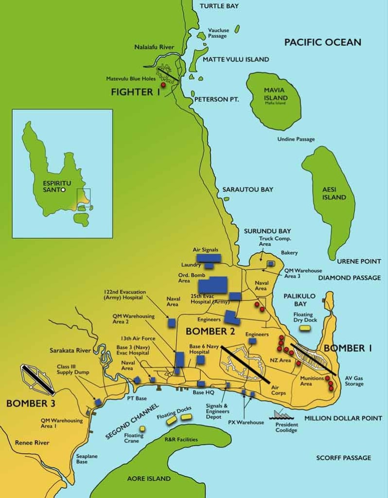 The South Pacific WWII Museum recently announced a partnership with the B-24 Liberator Memorial Australia to begin the formation of a sister-museum alliance. The South Pacific WWII Museum is located in the township of Luganville on Espiritu Santo, the largest island in the archipelago-nation of Vanuatu (formerly the New Hebrides). The organization is working hard to raise the capital necessary to establish a world class museum displaying the island’s WWII history. Given that Espiritu Santo served a pivotal role in the Pacific Theatre of Operations, providing a vital toehold for Allied forces to prosecute the war during those bleak early days, it seems only right that the island should have a formal museum space dedicated to that legacy. At its peak, more than 400,000 Allied service personnel, mostly Americans, were located on the island. In addition to a substantial naval base, there were several airfields which saw heavy use. Perhaps the most famous flyers in residence, at least for those of us here, were the Blacksheep of VMF-214 and their F4U Corsairs, which flew for a period from the fighter strip at Turtle Bay. Numerous other aviation units called the island home during the war, including a number of Royal New Zealand Air Force (RNZAF) squadrons. Furthermore, Royal Australian Air Force (RAAF) aircraft, especially flying boats, often flew to and from bases at Espiritu Santo and the nearby island of Efate.