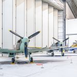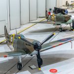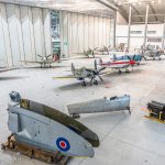 While The Fighter Collection’s F Mk.22 PK624 was not represented in its complete form, an example of the nearly identical F Mk.24 (VN485) was on view just beyond the exhibit doors for those interested in seeing how strikingly different these ultimate variants of the Spitfire appeared relative to their forebears. While it was a pity that VN485 could not have joined the collection in the formal exhibit, extricating the airframe from its position in the main AirSpace hangar would have presented a significant challenge, as a number of large aircraft were in the way.