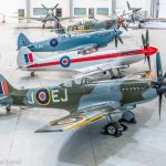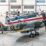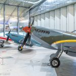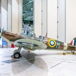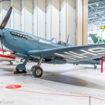 Organized by Imperial War Museum (IWM) Duxford and staged in the museum’s AirSpace Hangar, Spitfire: Evolution of an Icon was initially supposed to take place during 2020, but of course the pandemic intervened, and forced a delay until the end of 2021. The exhibit will now run from December 27th, 2021 through February 20th, 2022. Arranged in the front hall within the AirSpace hangar, the twelve Spitfires on show ranged from the IWM’s own airworthy Spitfire F.Mk.Ia (N3200) through to The Fighter Collection’s Spitfire F.Mk.22 (PK624). Interestingly, the latter airframe, presently unrestored, is normally tucked away out of public view in Duxford’s Hangar 2, so it was a nice opportunity to see this reclusive and rare variant up close for a change. Museum staff were on hand in the hall to provide further information about the aircraft in the exhibit while small activity displays demonstrated different aspects of the Spitfire. Furthermore, a retail area nearby offered various Spitfire-related products.