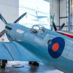 As already intimated, the Spitfires participating in the exhibit revealed the different stages in the type’s development. The design evolution was immediately evident across the range of marques on display, from the dainty-looking Mk.I with its 1,000 hp Rolls-Royce Merlin, three-bladed propeller and .303 calibre machine guns, through successive variants with more powerful Merlins and beefier armament up to the far more muscular, almost brutish visage of the Griffon-powered examples towards the end of the type’s development.