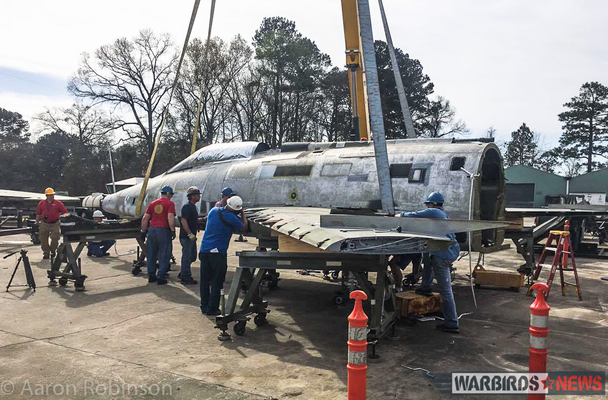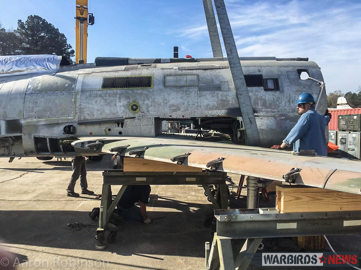 Now that 56-2995 has successfully re-acquired a set of wings, the restoration team will install her undercarriage and wheel the fighter back inside to continue the restoration. WarbirdsNews wishes to express our sincere thanks to Aaron Robinson who sent in the news this afternoon along with these fascinating images. Aaron Robinson, alongside General Goddard, has been the driving force behind this restoration, and we are sure it will be a fabulous representation of their efforts when complete. We look forwards to reporting further on this important project!