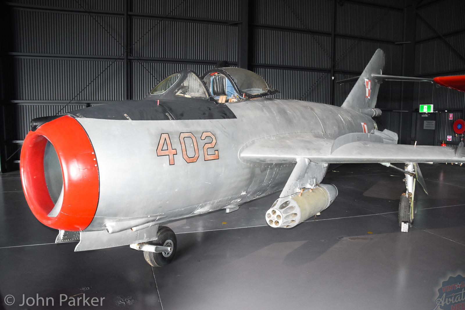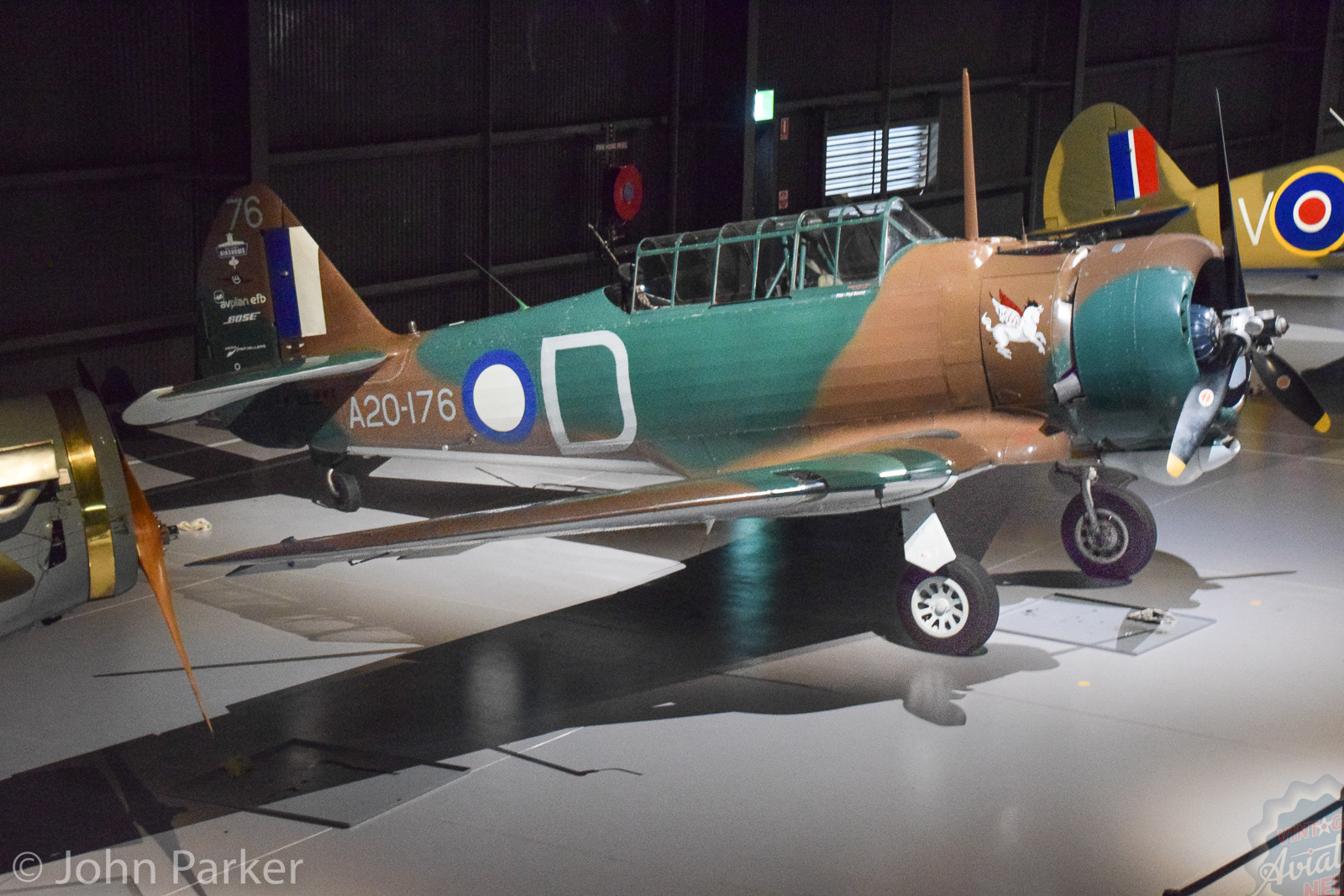 The other aircraft presently on display in the new museum include former Royal Australian Air Force (RAAF) de Havilland Tiger Moth VH-PCL, assembled in Australia with a British-built fuselage and Australian-made wings during 1942. Stearman (Boeing) B75N1 Kaydet VH-YDF, CAC CA-3 Wirraway A20-81 (VH-WWY), North American T-6G Texan 49-3186 (VH-HAJ), Curtiss Kittyhawk Mk.Ia ET433 (VH-KTY), Supermarine Spitfire F.Mk.IX MH603 (VH-IXF), CAC CA-18 Mustang Mk.21 A68-107 (VH-AUB), CAC CA-25 Winjeel A85-426 (VH-DKK), Lim-6M (MiG-17) “402”, Cessna O-1E Bird Dog 51-12288 (VH-YAP), GAF/Dassault Mirage III A3-44 and CAC/Aermacchi MB-326H A7-047.