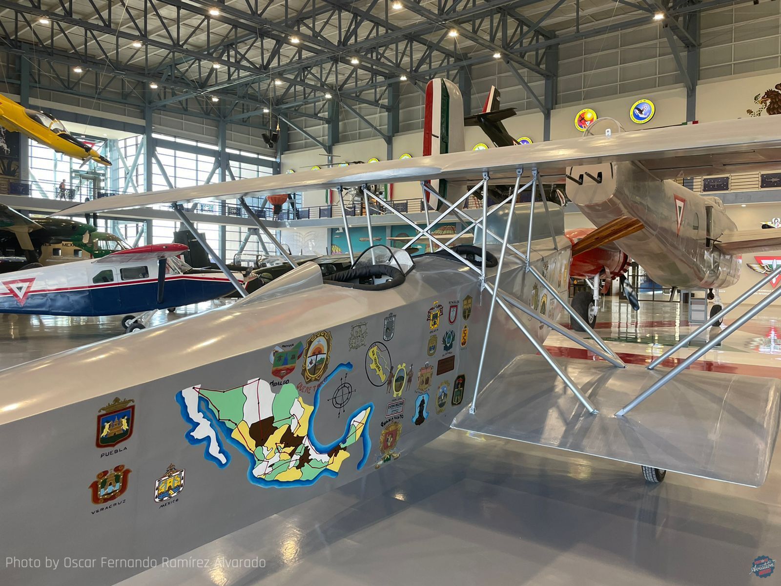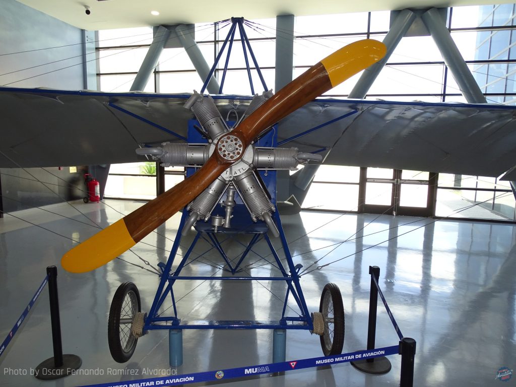 The oldest aircraft available are an original Parasol Series H from 1917, a reproduction biplane Series C from 1919, and an original fuselage of a Sesquiplane Azcárate OE-1 from 1928. Other aircraft of great importance to Mexican aviation on display are the North American AT-6, Republic P-47D, Thinderbolt, a recovered North American B-25J, North American T-28 A, Pilatus PC-7, IAI Arava, North American T-33 A, and a Northrop F-5E. Visiting the museum entrance tourist corridor is a unique experience, since in each of the roundabouts and in other areas, airplanes are displayed either in flight position or on the ground, some of them are the Douglas DC-6, Pilatus PC-7, and the North American T-33 A.