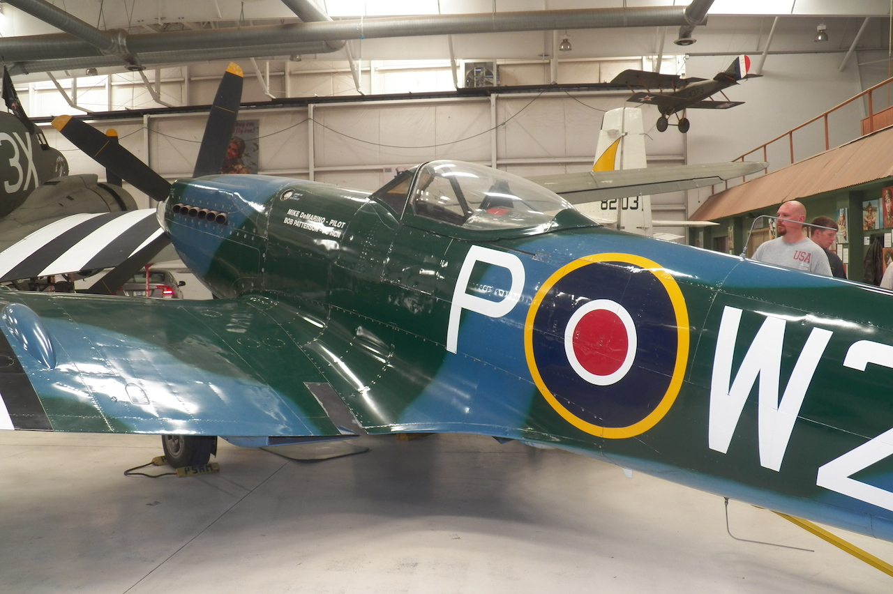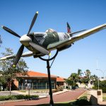 A fibreglass replica of a Supermarine Spitfire Mk.XVI sits on a pole outside the entrance to the RAAFA Aviation Heritage Museum in Bull Creek, near Perth in Western Australia. This replaced the original Spitfire Mk.22 PK481 which is now restored and on display inside the museum. (photo by Phil Buckley)