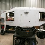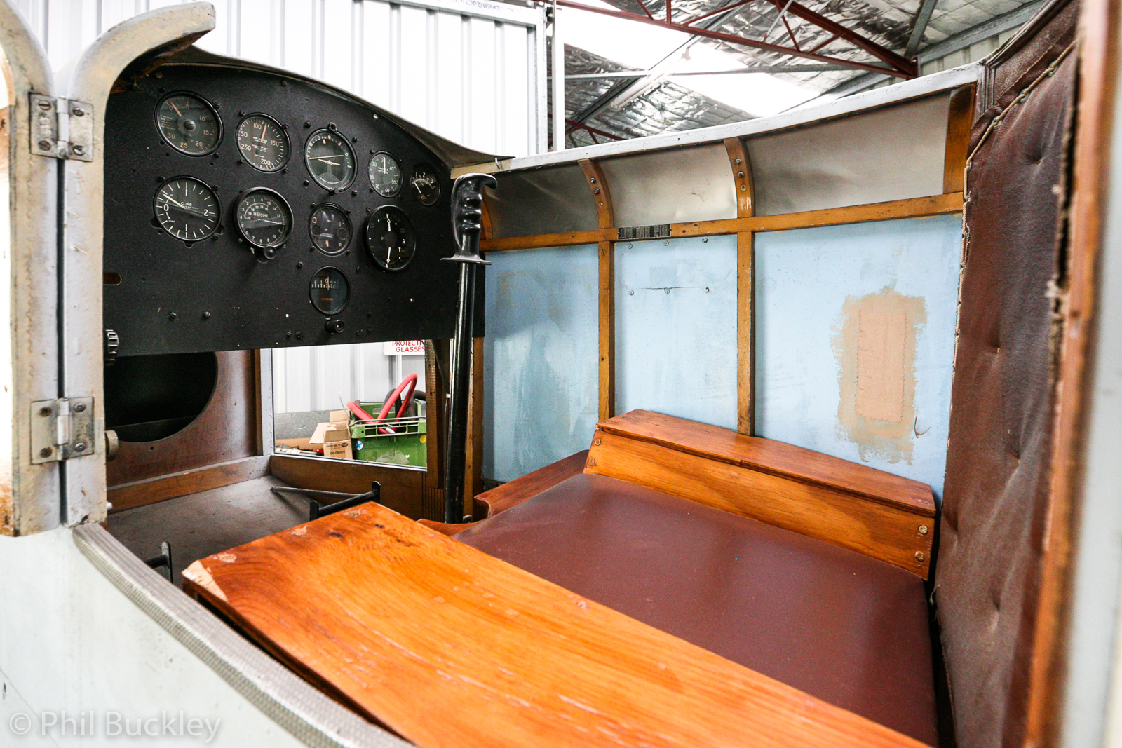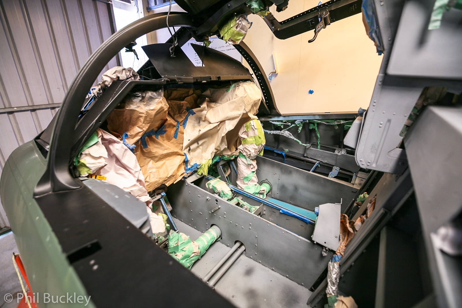 Inside the naked crew compartment, which was being prepared for a fresh coat of paint during the author’s visit. (photo by Phil Buckley)