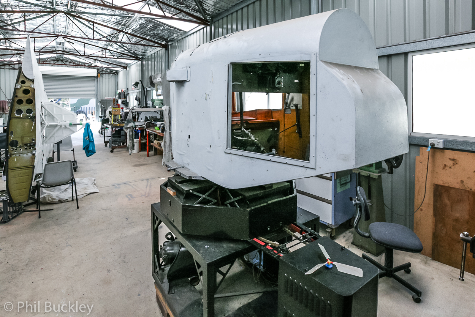 Also in the workshop during WarbirdsNews visit was another flight simulator, this one being a WWII-era Link D2 trainer. This device is crude in nature, but was designed to provide blind-flying training for nascent pilots, so they could gain some experience flying solely on instruments in the safe environs of the flight school hangar. Designed in the late 1920s by Edwin Link in the USA, the Link Trainer enjoyed world-wide success in its various forms, and greatly contributed to the Allied war effort during WWII. The RAAF received 140 of them for training their pilots, and continued using them into the 1970s, which resulted in quite a number of them surviving long enough to be preserved. The one in the museum’s workshop is undergoing restoration to operable status, and will hopefully allow the chance for museum visitors to experience what it was like in one of these primitive, though effective flight training aids.
