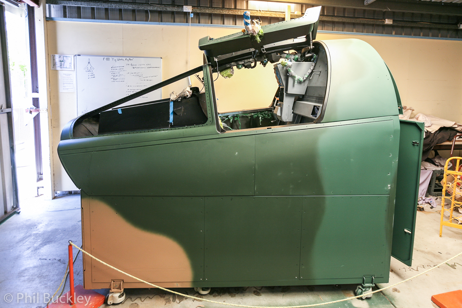 The F-111 flight simulator. (photo by Phil Buckley)Inside the naked crew compartment, which was being prepared for a fresh coat of paint during the author’s visit. (photo by Phil Buckley)