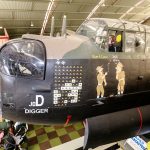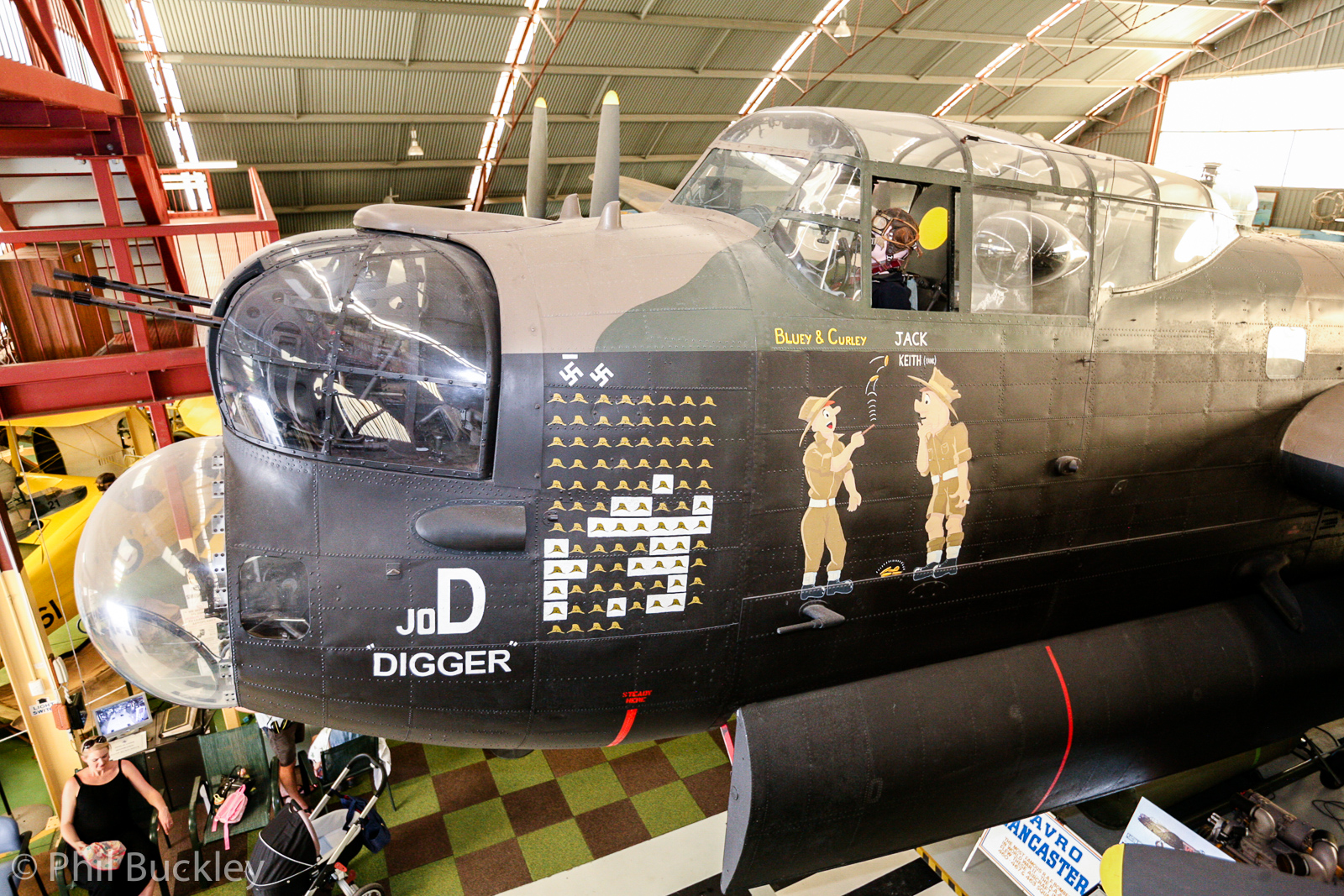 The nose of Avro Lancaster B.VII NX622. This aircraft was built under license by Austin Motors for use in Tiger Force, the planned Far East British heavy bomber fleet for pursuing the bombing campaign against Japan. WWII ended before Tiger Force could deploy of course. This Lancaster ended up flying with the French Navy alongside 21 others of the type. The French retired her on the island of New Caledonia in 1962 and donated her to the RAAFA at that time. She currently wears the markings of LL847 which was shot down with her Australian crew on 18 December 1944 . (photo by Phil Buckley)