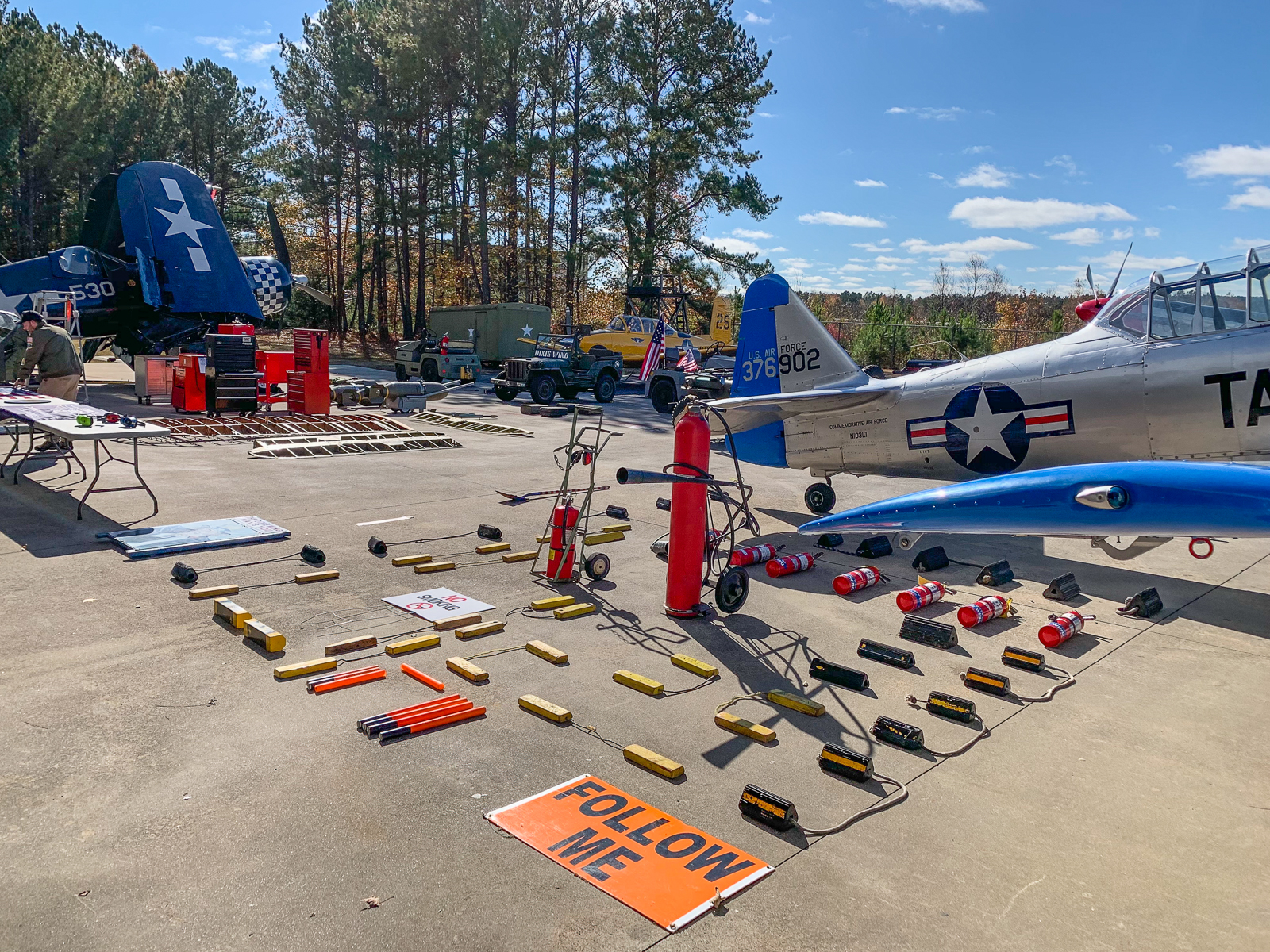 To respect the Tetris Challenge rules of engagement, the volunteers laid out the tools they need to support their warbird fleet, as shown in the pictures below.