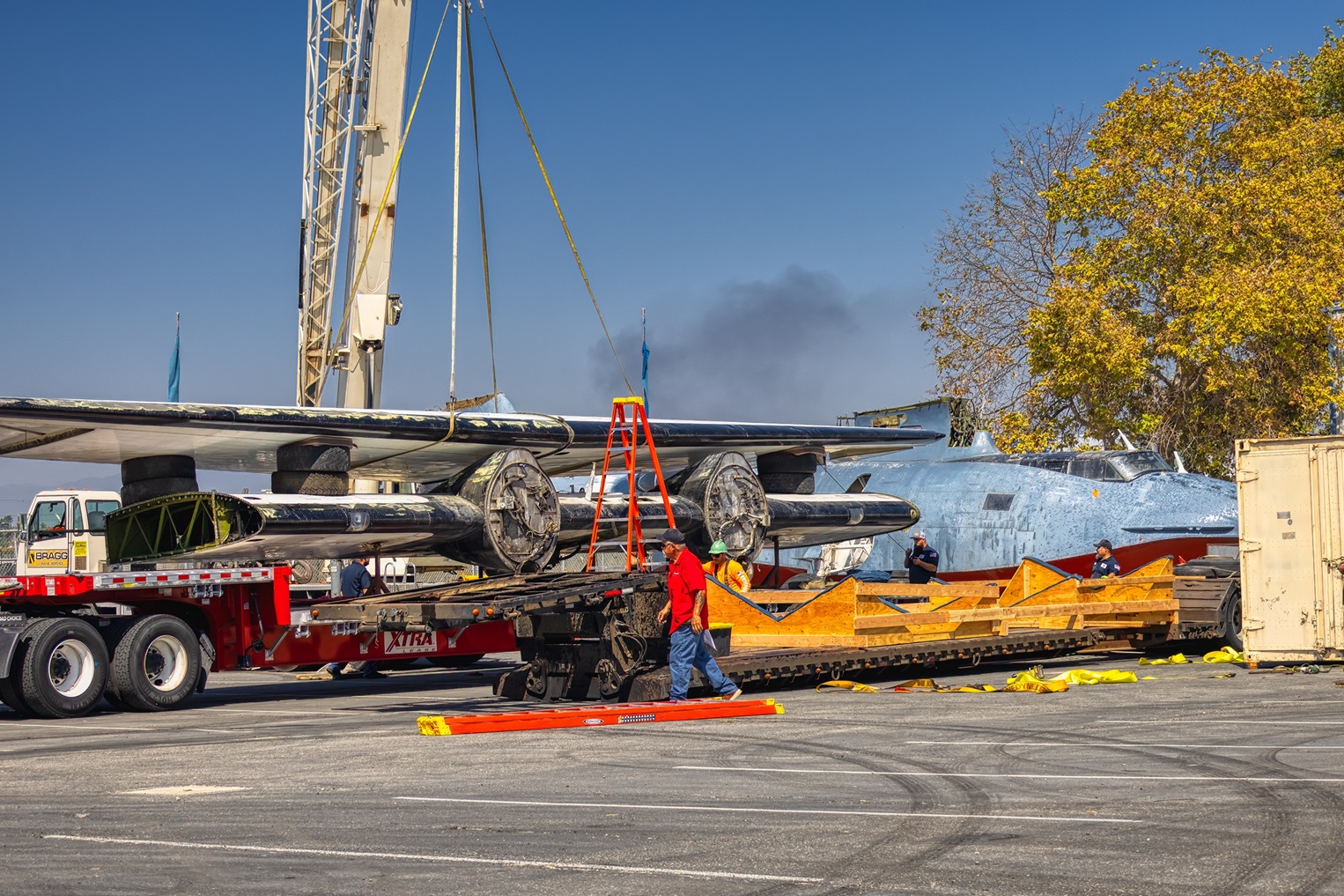 Recently, the Yanks Air Museum posted on its social media pages that a team from the museum arrived in Ephrata to begin disassembling the aircraft for shipment by trailer to Chino. In its replies to commentators, the Yanks Air Museum has also announced that the ultimate goal of Yanks’ acquisition of the Catalina is to restore it to airworthy condition and maintain it as such. In addition to this upcoming Catalina, the Yanks Air Museum has already been storing another Catalina formerly used as a fire tanker by SLAFCO in Washington state, N2763A, which was previously used as an airliner for Alaska Coastal Airlines. While the aircraft has been stored for nearly ten years now at Yanks, it will now be providing parts for N9505C. On the first weekend of October, N9505C arrived at the Yanks Air Museum, where photographer John Guzzi happened to be there and captured the scenes of the Catalina being lifted off the trailer and placed on the tarmac. As for when the Catalina will begin flying out of Chino, all that can be said is that it will be done when it is done. It is a tremendous undertaking for the museum, but they are determined to give the Always Catalina a new lease on life. For more information, visit the musuem’s website here.