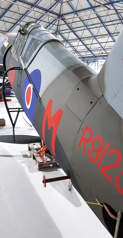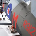 The technician responsible for this effort, Clive Roberts, noted: “Thousands of stitches were made attaching the linen to the fuselage, wings and tailplane followed by six coats of doping, a UV microwave protection layer, primer and then finally painted in its 161 Squadron Special Ops color scheme. It’s a slow process but essential to preserving the aircraft for as long as possible. We sought the help of a Lysander expert based in Switzerland, who provided us with original photographs and technical drawings to help with the paint scheme. One of the photos shows that during R9125’s service with 161 Squadron the cooling gills were incorrectly fitted so the camouflage no longer lined up. Since this has been documented we will change ours to match that.”