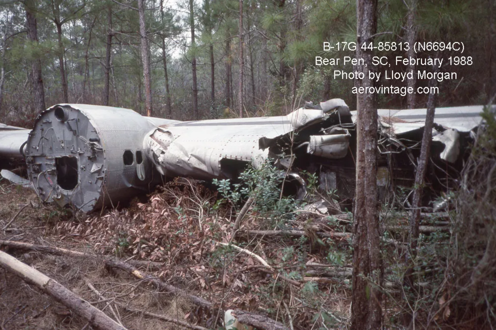Since the inner wing panels are a high-interest B-17 topic these days, it is interesting to take a closer look at what the Champaign Lady team is doing. As it happened, 44-85813 (operating as N6694C) was severely damaged in an April 1980 accident at Bear Pen, South Carolina, while operating as an air tanker. The fuselage was largely burnt out. The wings, though damaged, were relatively intact.