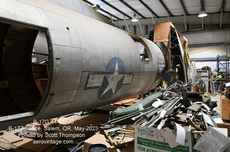 It has been quite some time since our last update on the B-17 Alliance Foundation’s remarkable effort to restore Boeing B-17G Flying Fortress 44-85790 Lacey Lady in Salem, Oregon, but thanks to Scott Thompson of Aero Vintage, we have permission to relay his latest article on the project, reproduced (with gentle editing) below.