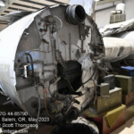 Speaking of the wings, the left wing has been disassembled and the spar assemblies are being closely inspected. The inbound ends of the spar trusses where they join the wing attach terminal fittings are the subject of the new FAA Airworthiness Directive, so particular attention will be paid to these parts. Engine nacelles are being rebuilt one at a time. The four engines themselves appear to be candidates for an overhaul to airworthy condition, but that won’t be definitively established until disassembly at an engine shop at some future point. The B-17 Alliance obtained new propeller blades for use with overhauled prop hubs when the time comes. Many of the aircraft’s original propeller blades had small holes drilled in them to hold banners when the airplane was over the gas station – no one had any idea back then that the airplane might once again fly.