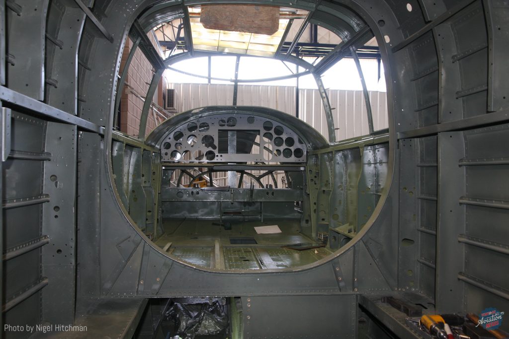 In March 2016 we could see a lot of progress with the rear gunner area being rebuilt, which had been removed some time previously and similarly the top turret being fitted. The center section was now coming together and one outer wing mostly completed. Many components had also been overhauled and were starting to come back.