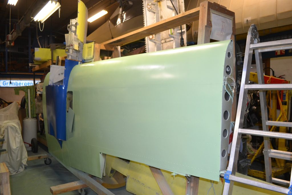 In the meantime, work progresses on the pieces of OO-SEI which BAPA actually has in house. The airframe has greatly progressed from a nearly empty shell to freshly primed and painted components which are nearing the assembly stage. The striking blue and green scheme of Sabena’s Cessna 310s is being reapplied to show OO-SEI exactly as she was when in service. The transformation of OO-SEI is entirely through the hard work of the BAPA volunteers, one of whom actually did his first multi-engine flight in OO-SEI when training with Sabena decades ago.