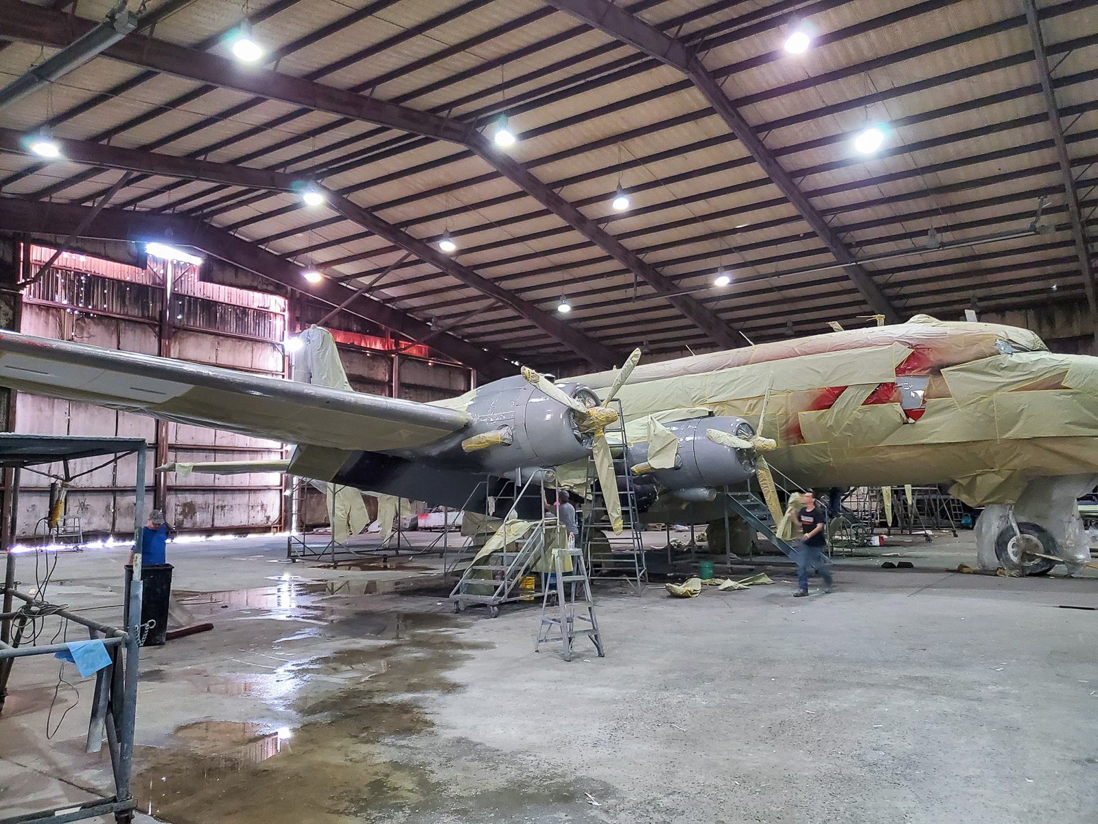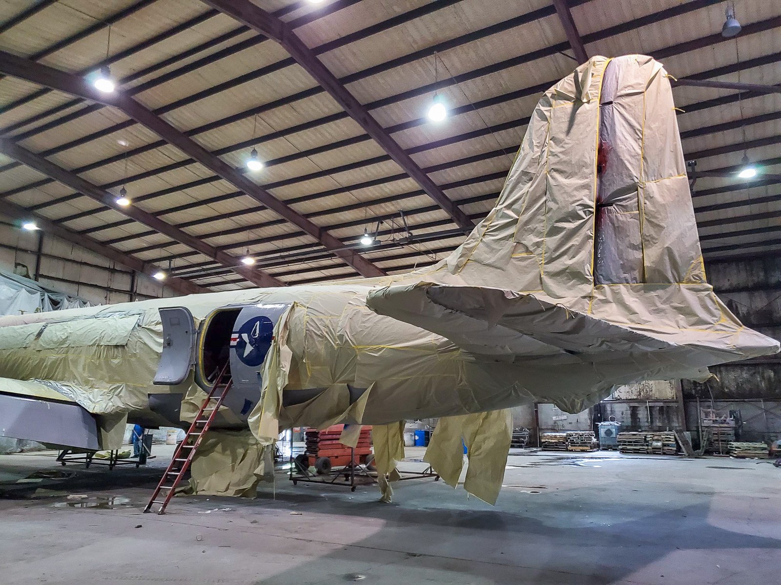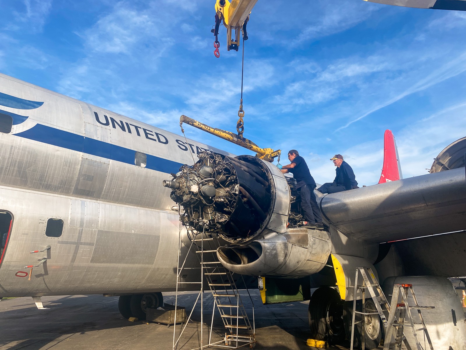 With the tough decision regarding 44-9144’s made, the BAHF had to find a suitable replacement – not an easy task in today’s world with just a handful of economically viable airframes available. Thankfully, they were able to work out a deal for the acquisition of 43-17228 with Loren “Lynn” Florey at Island Air Transport, negotiations which they successfully concluded in August, 2020. Their new charge was located at New Smyrna Beach Municipal Airport in Florida, where it had resided since 2014, albeit in a dormant state for much of the time. With the acquisition of 43-17228 came the inevitable frenetic endeavor to get her flying again. Quite a few of the undamaged components from 44-9144 ended up moving to the new airframe as part of this effort, including a lot of cockpit components, the propellers and even one of the horizontal stabilizers. During this process, the BAHF received considerable support from Gary Norville’s American Aero Services, which is located at New Smyrna Beach. They had permission to use the ramp outside the warbird shop to work on the C-54, not to mention free access to a considerable array of tools, which made the process much easier to handle. After considerable hard work, the team had their new C-54 taxiing again by January this year.